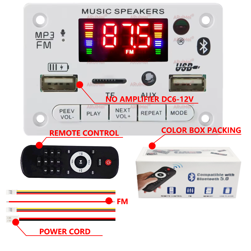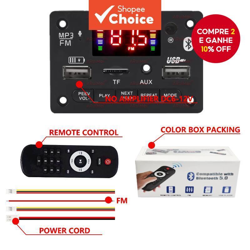 Placa Amplificadora Bluetooth 5.0 Com Rádio FM USB Módulo Misturador De Áudio Para Carro Mãos-Livres Elite