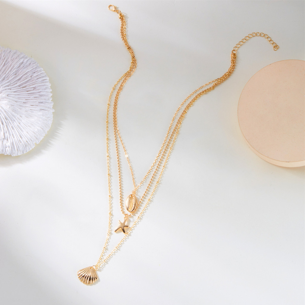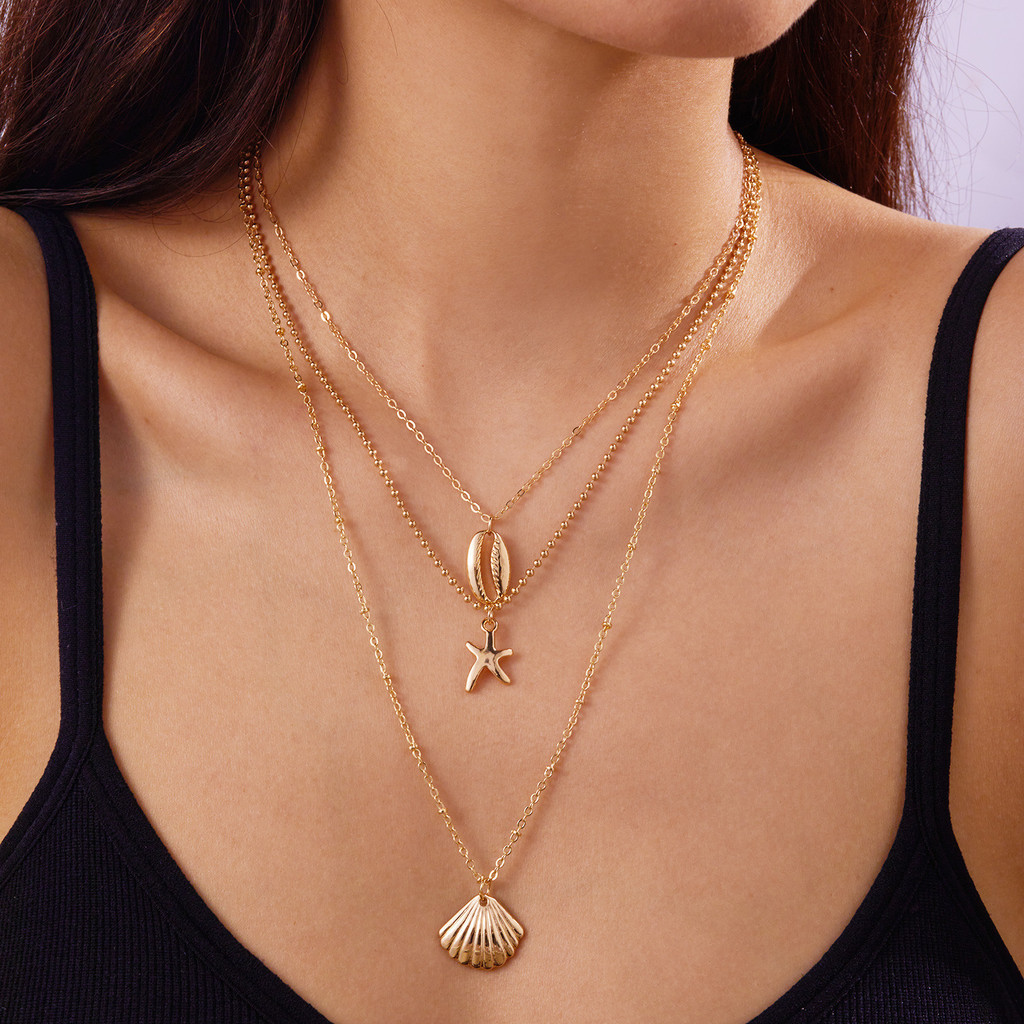 Colar em Camadas de Conchas de Estrela do Mar, Joia Boho para Praia, Presente de Moda de Verão para Mulheres