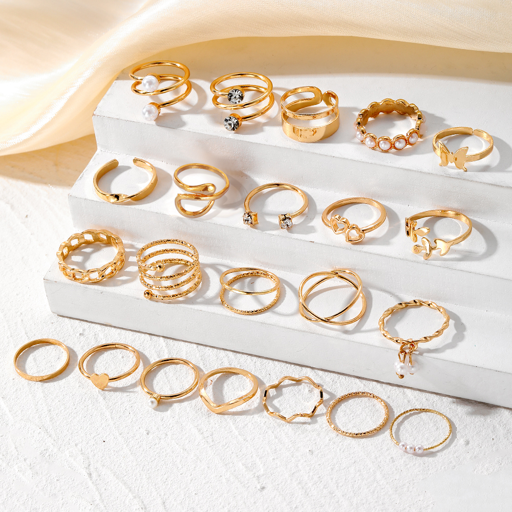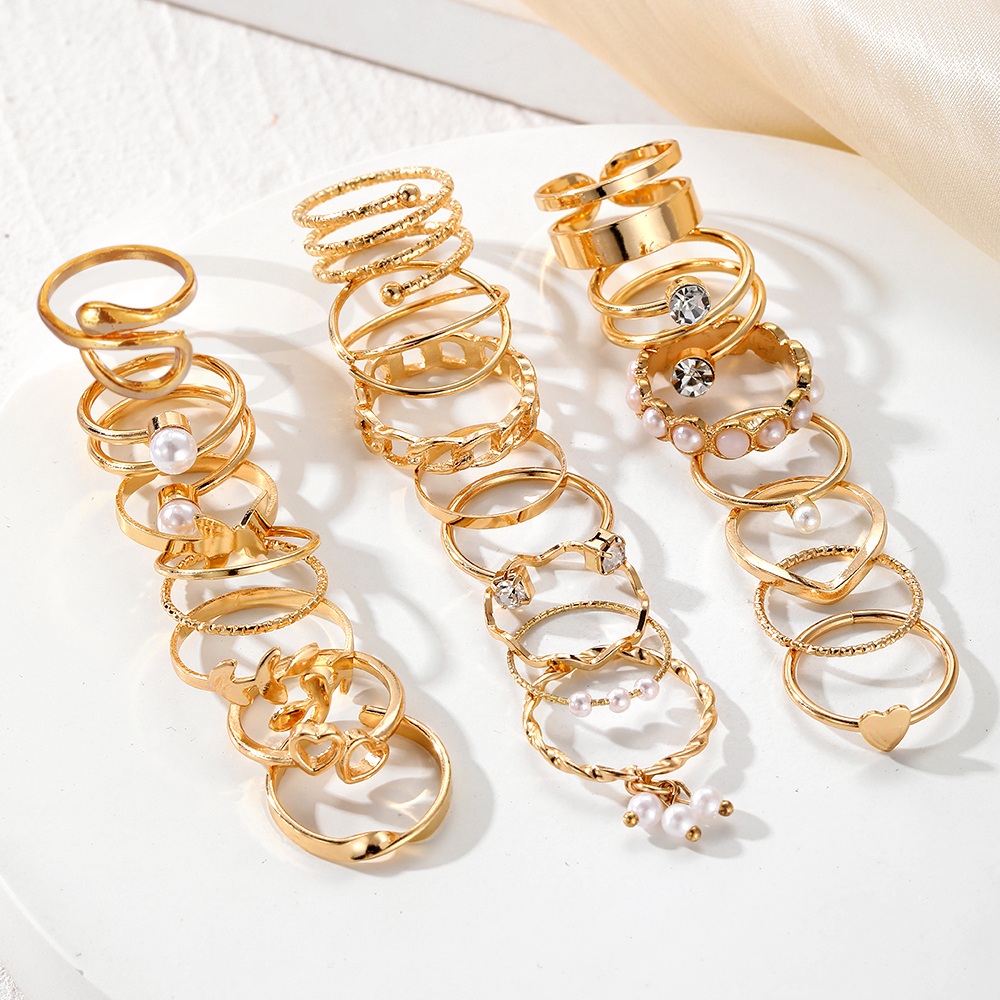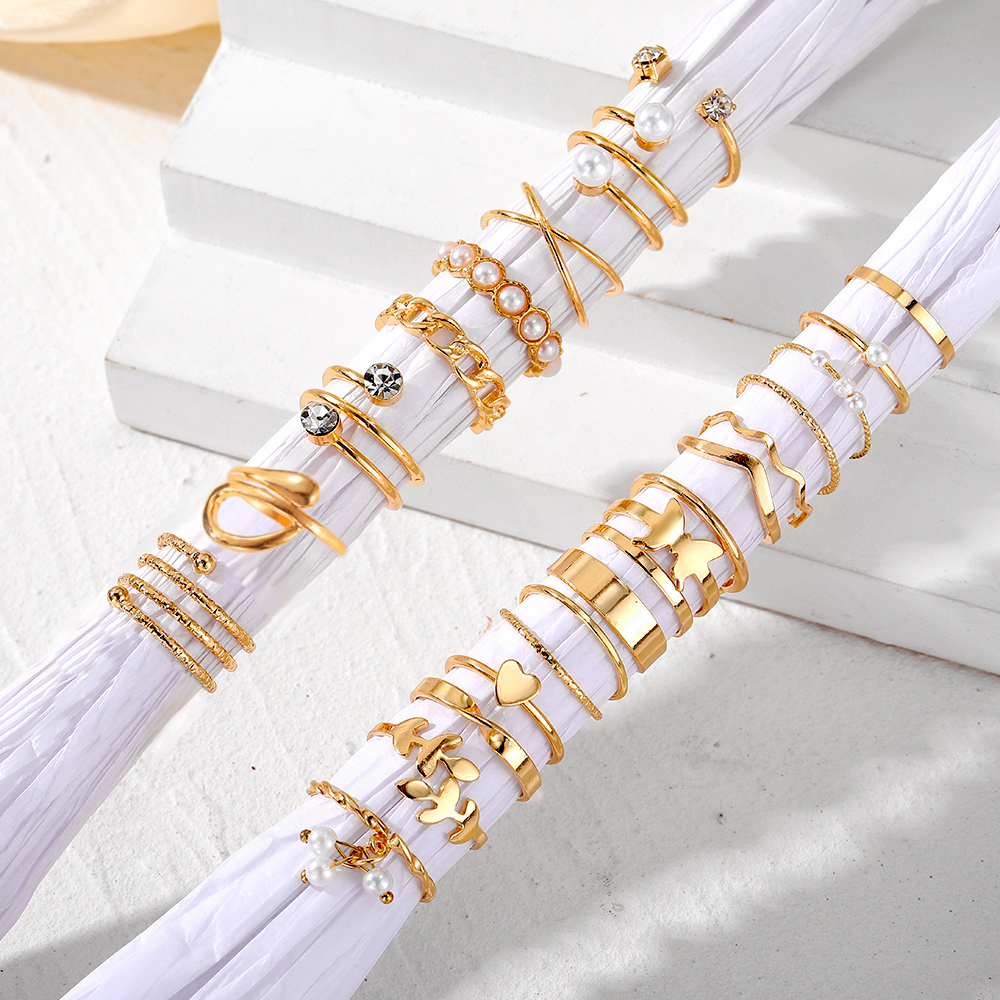Conjunto de Anéis Twist Pérola com 22 Peças, Joia Empilhável Elegante para Mulheres