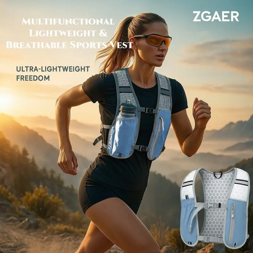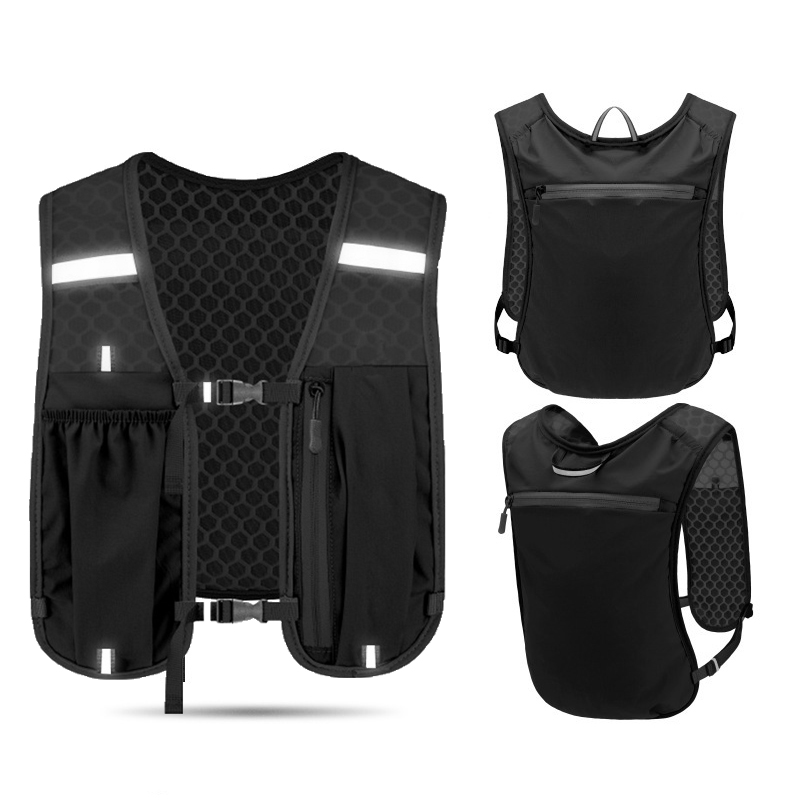 Mochila para corrida noturna, com faixa refletiva, colete respirável e à prova d'água para ciclismo.