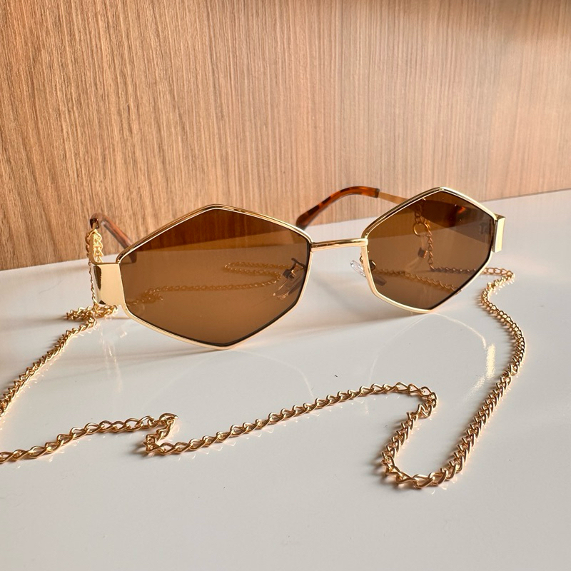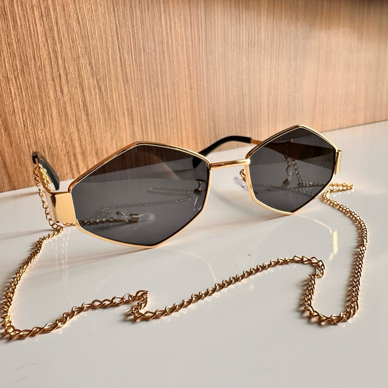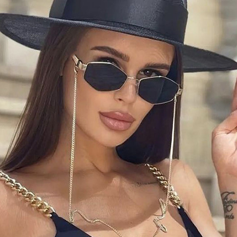 Óculos de sol retrô poligonais com estilo fashion, tendência de metal retrô, corte diamante, adequado para homens e