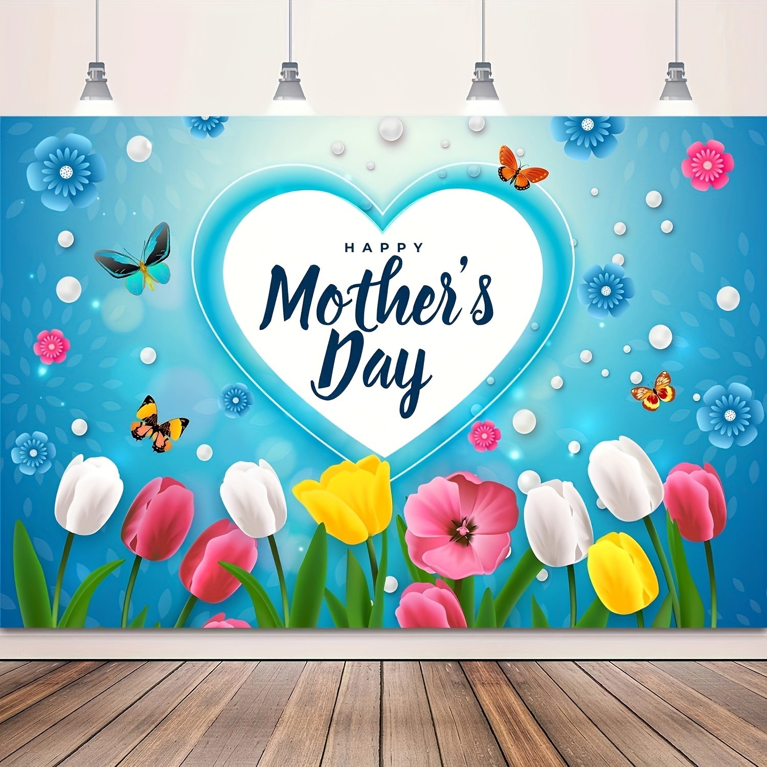 Banner De Feliz Dia Das Mães-Decorações Para Festa | Pano De Fundo Rosa E Azul