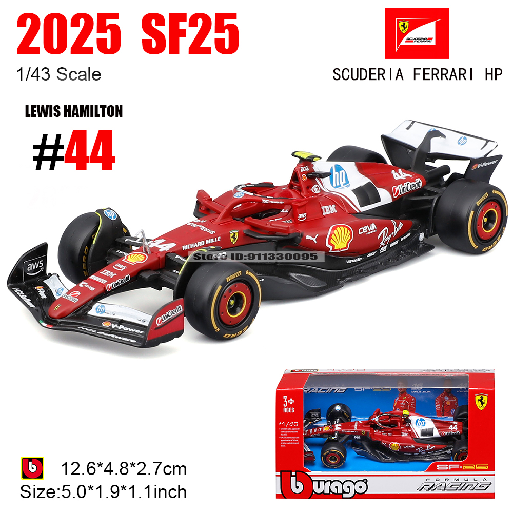 Bburago 1:43 F1 2025 Scuderia Ferrari HP SF25 #16 Charles Leclerc #44 Lewis Hamilton Modelo de Carro de Liga Diecast