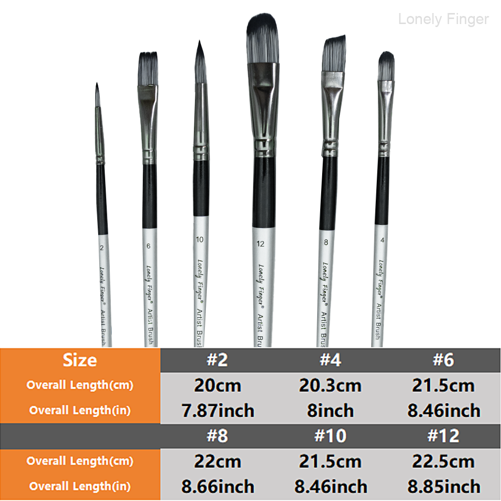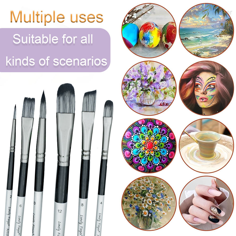 Lonely Finger 6 PCS Nylon Profissional Pincéis de Pintura para Aquarela, Óleo, Acrílico, Arte Corporal e Rosto,