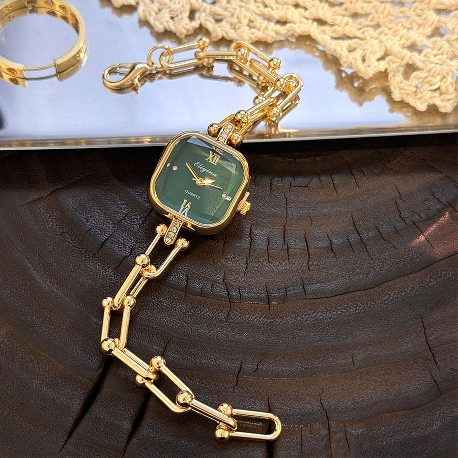 Relógio De Quartzo De Luxo Feminino Estilo Pulseira Exclusivo Com Fecho Lagosta De Vidro Corte Quadrado Tamanho Médio Ac