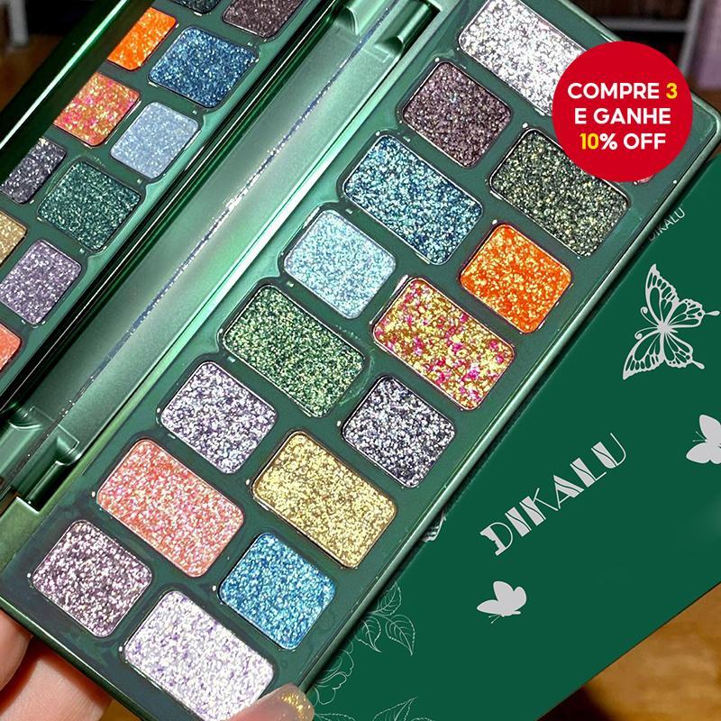 Paleta de Sombras com 16 Cores - Brilho Total com Glitter Cintilante e Tons de Diamante Despedaçado para Diversos