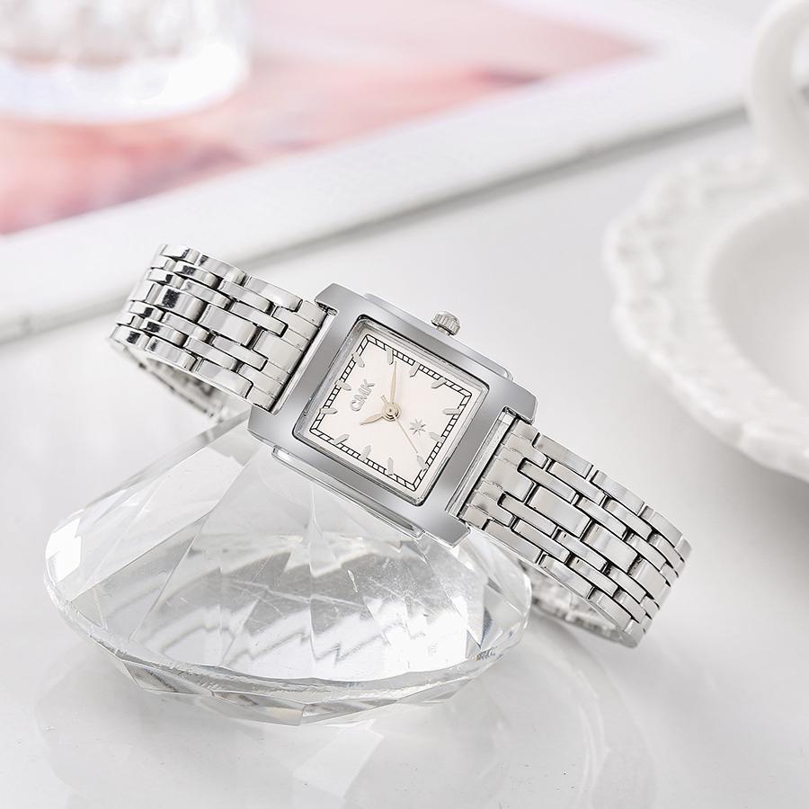 Nova Moda Luxo Mostrador Quadrado Relógio De Quartzo De Aço Inoxidável Para Mulheres Acessório De Uso Diário