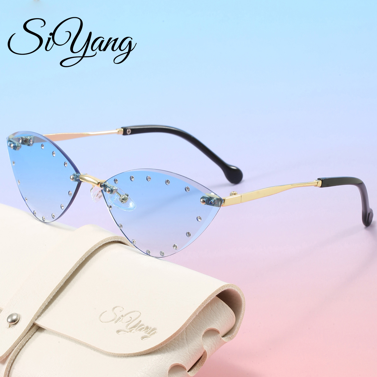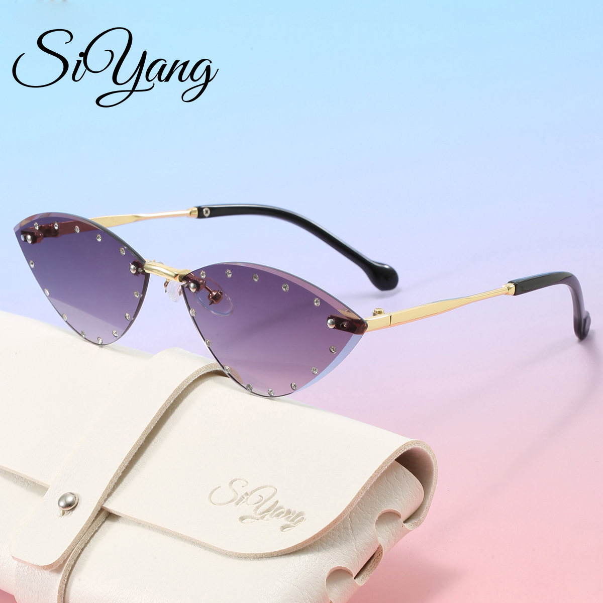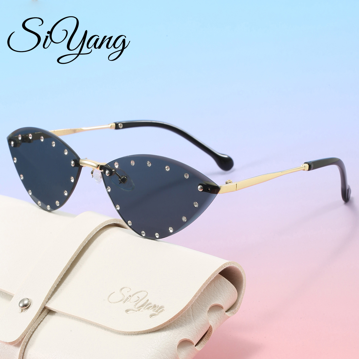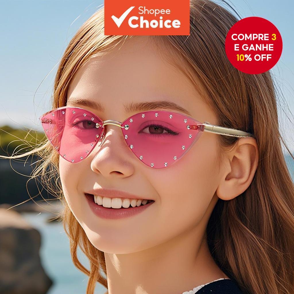Novos Óculos de Sol Sem Aro para Crianças com Strass, Estilo Gatinho, Acessórios de Viagem para Meninos e Meninas,