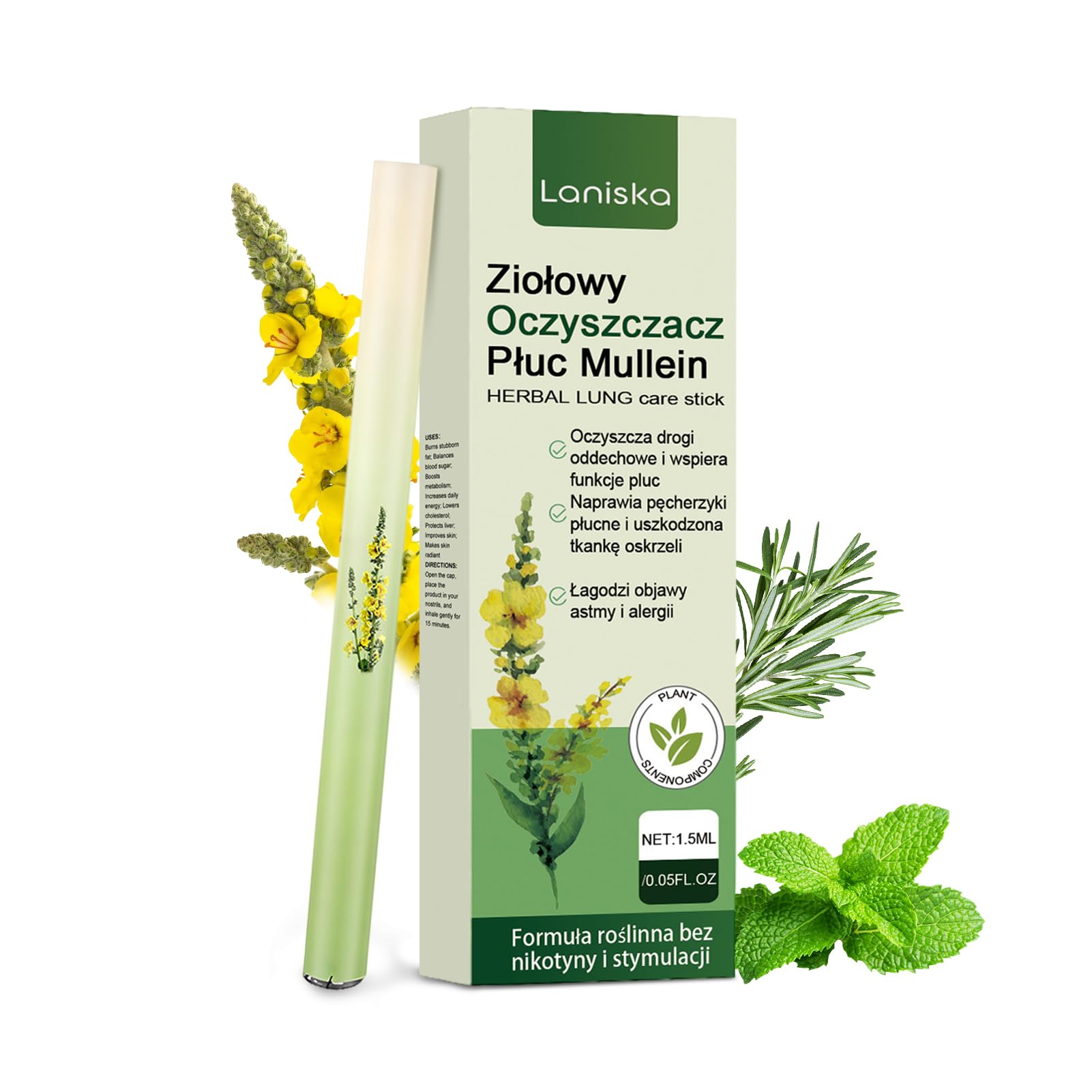Inalador Herbal de Verbasco para Homens e Mulheres - Caneta Difusora Atualizada para Suporte Respiratório