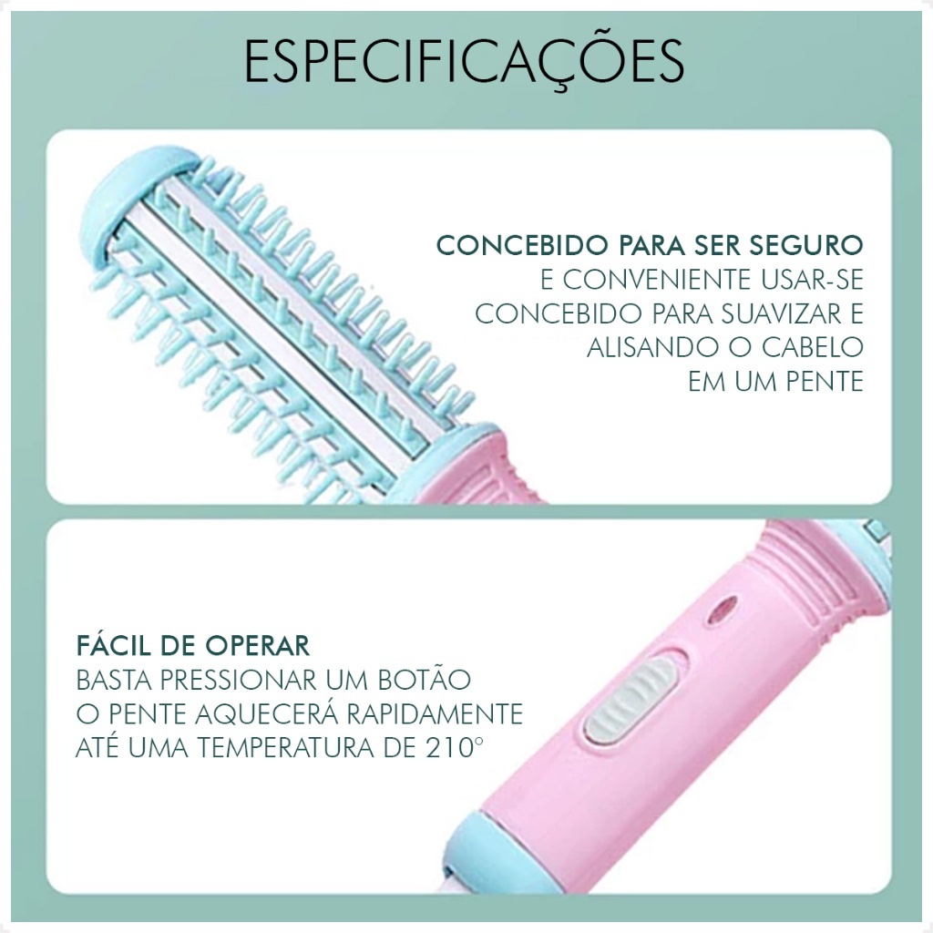 Mini Escova De Enrolar ou Alisar Cabelo 2 em 1 Bivolt