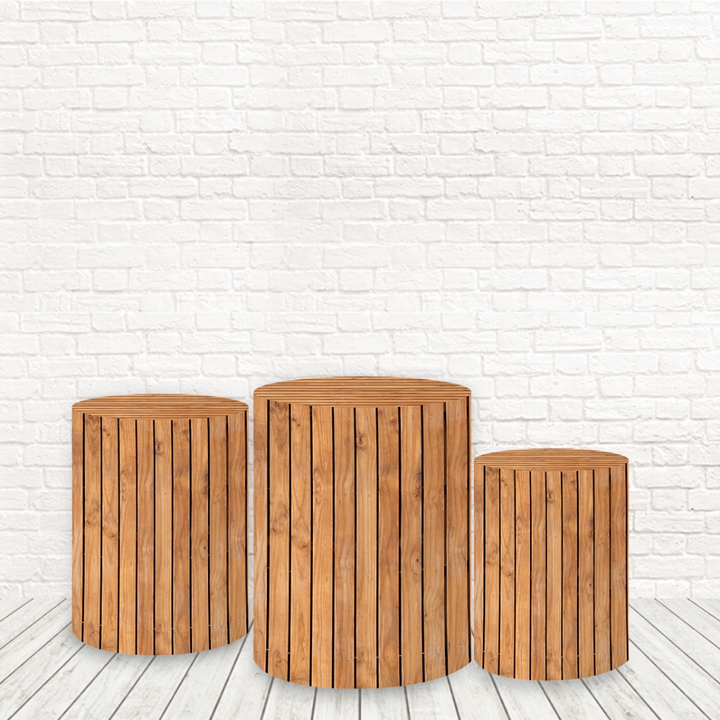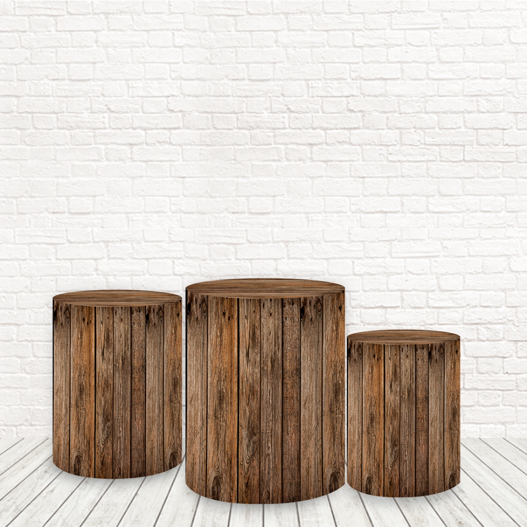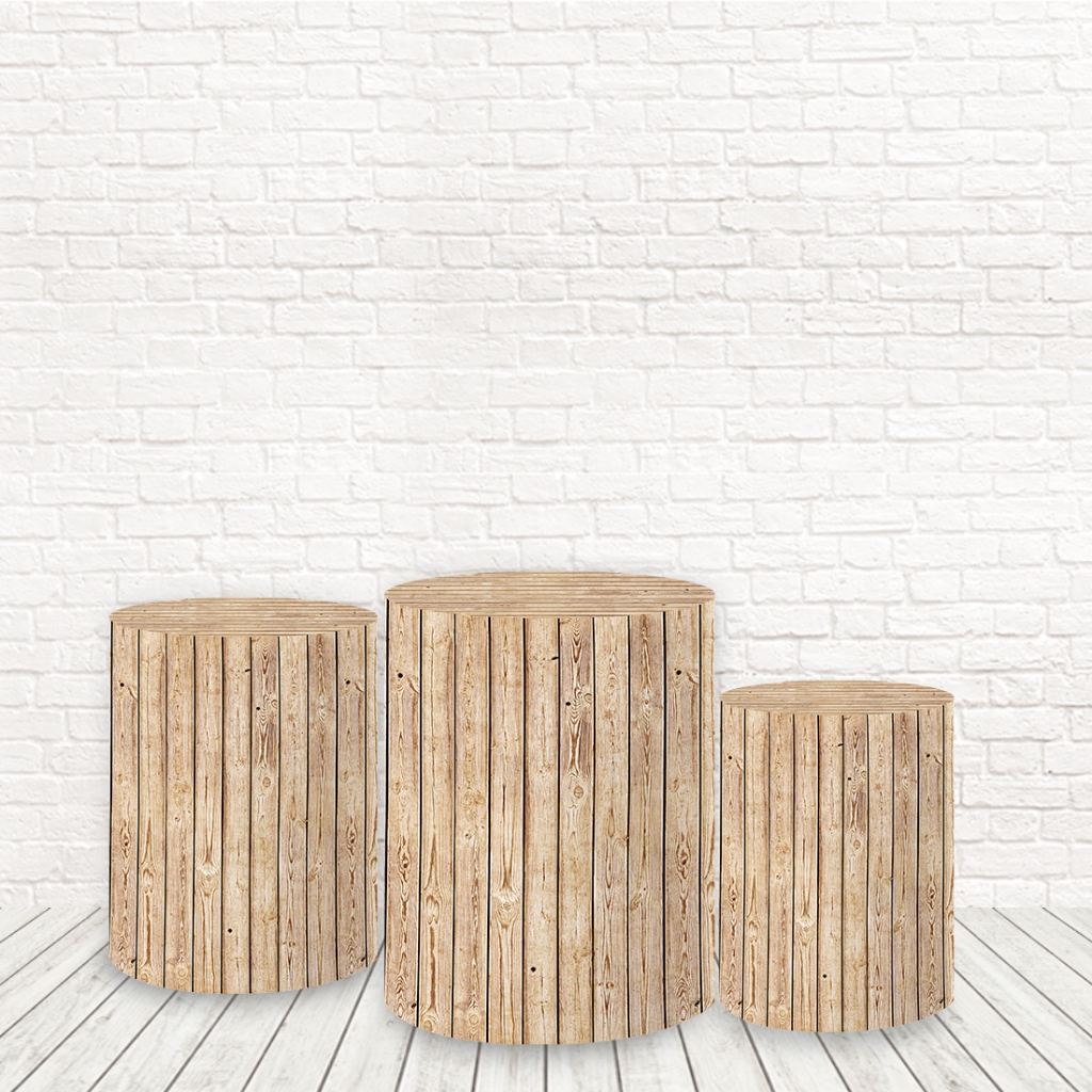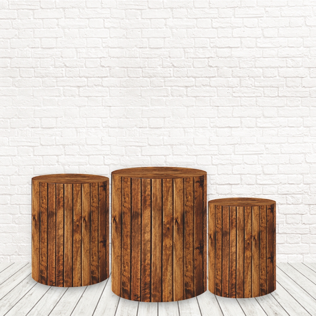 Trio de Capas Cilindros Festa Tecido Sublimado 3D Ripado Madeira