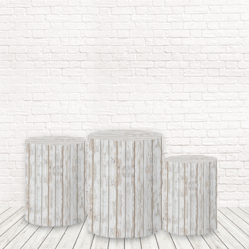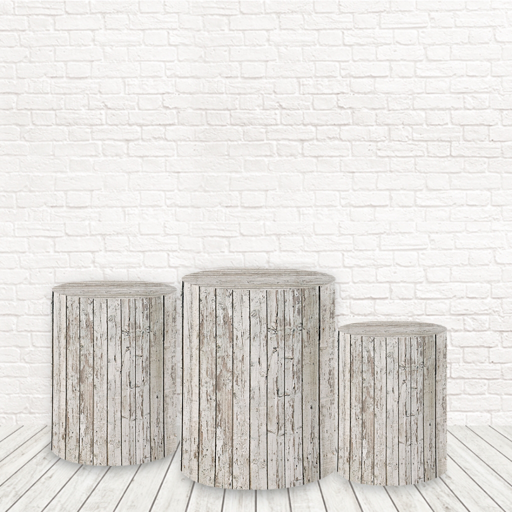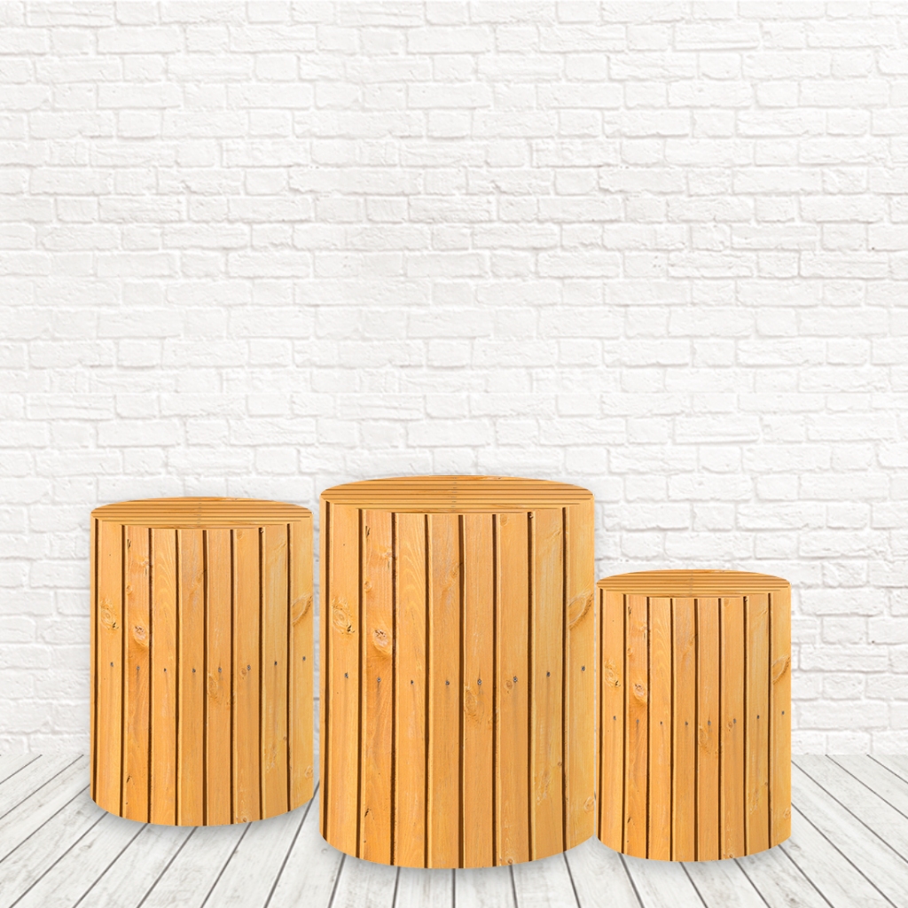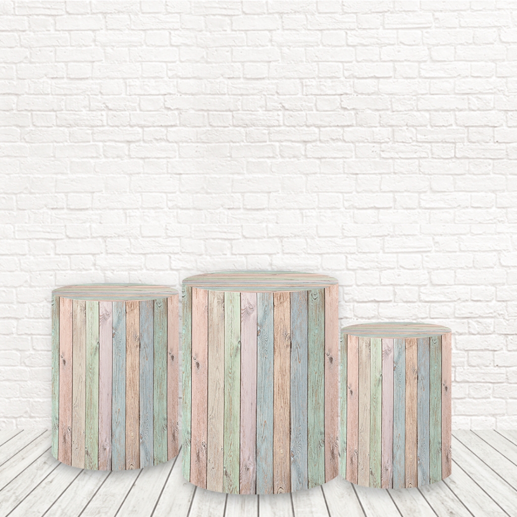 Trio de Capas Cilindros Festa Tecido Sublimado 3D Ripado Madeira