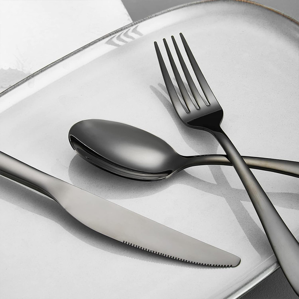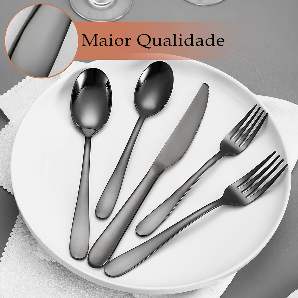 Kit 24 Peças Jogo De Talheres Preto Aço Inoxidável 416
