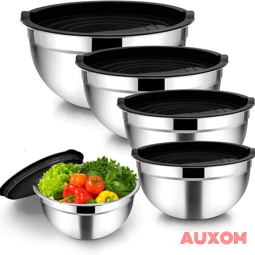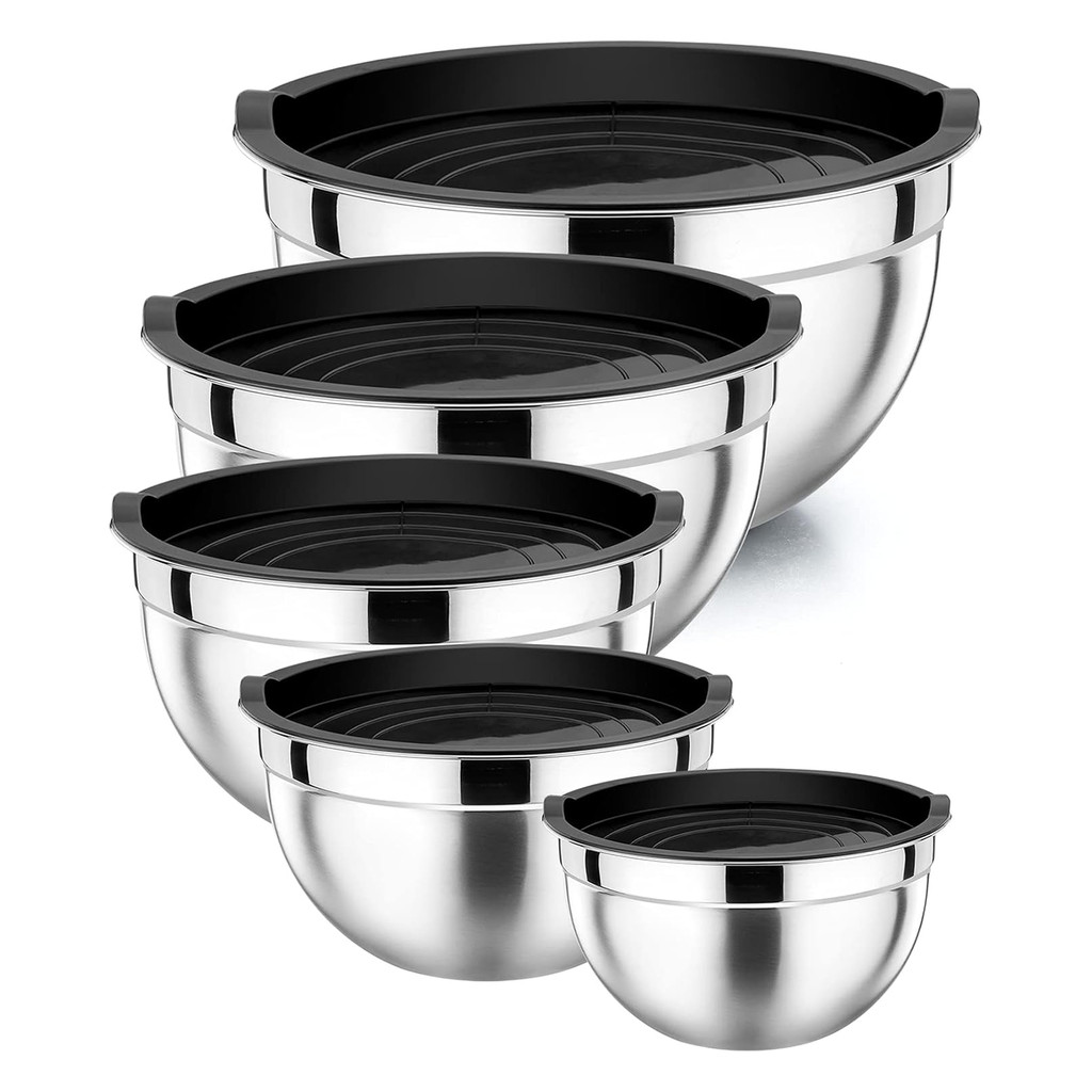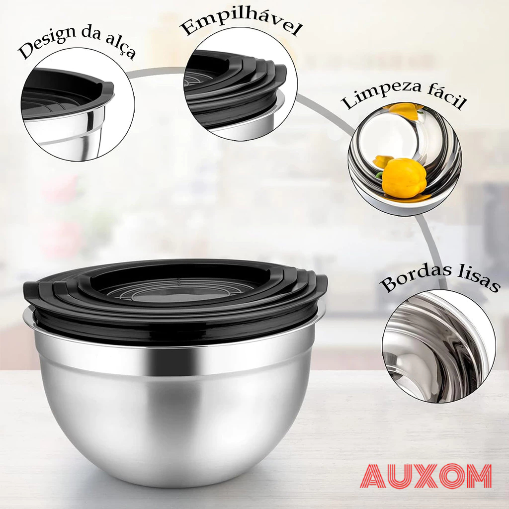 Kit 5 Tigelas de Aço Inoxidável com Tampas Herméticas para Salada e Armazenamento de Alimentos Cozinha Doméstica