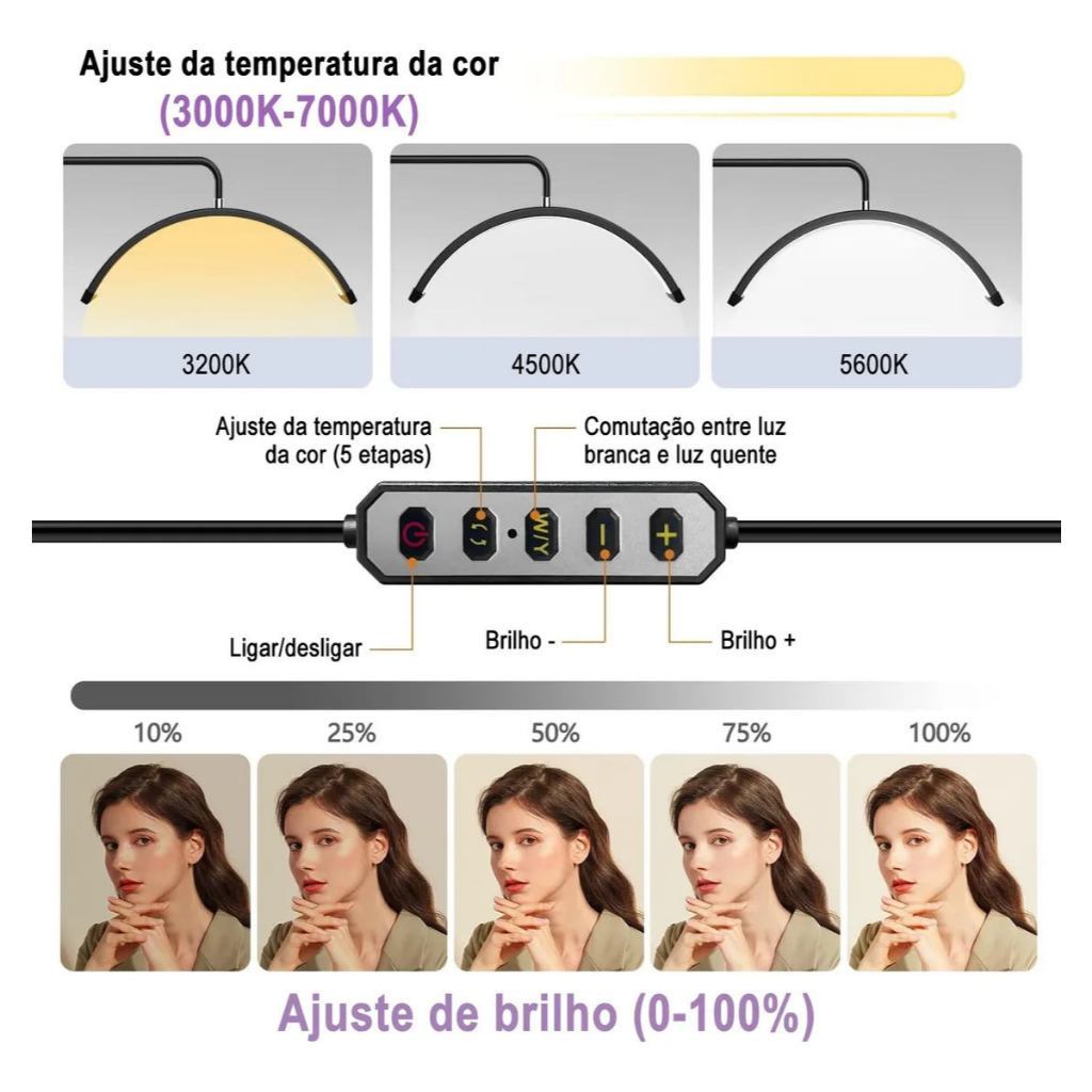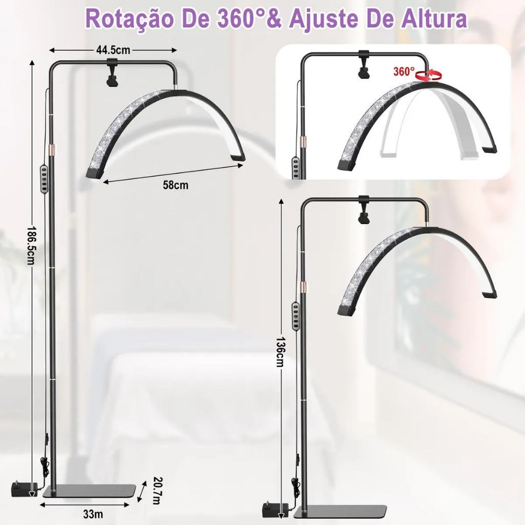 Luminária Estética de Chão com LED Ajustável para Salão Beleza e Spa
