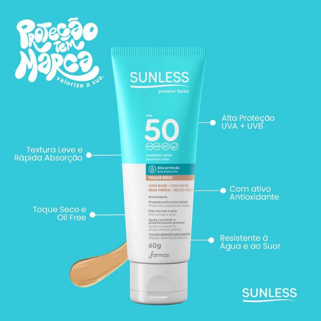 Protetor Solar Facial Sunless com Proteção FPS 50 - 60g Com cor e Incolor