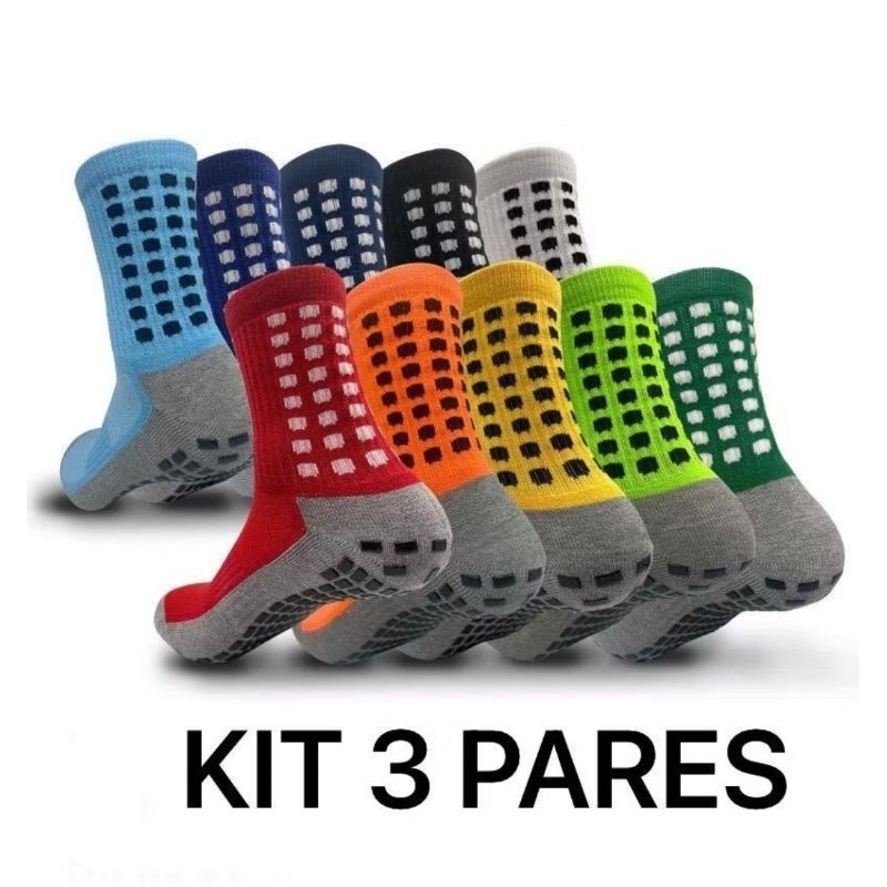 KIT 03 Meias de futebol Esportivas De Algodão Antiderrapantes De Alta Qualidade