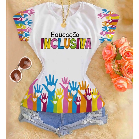 T-shirt Blusa Feminina Premium Estampada Educação Inclusiva P ao GG