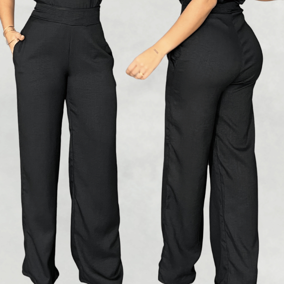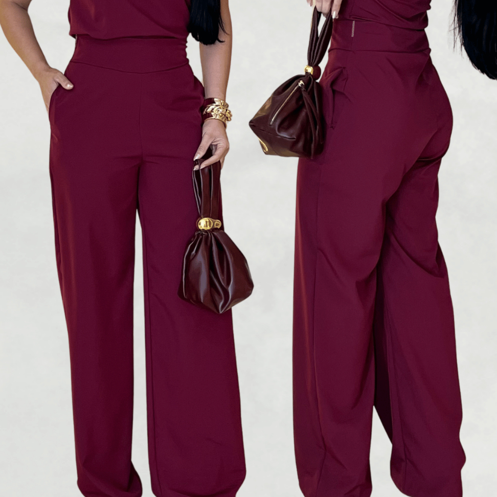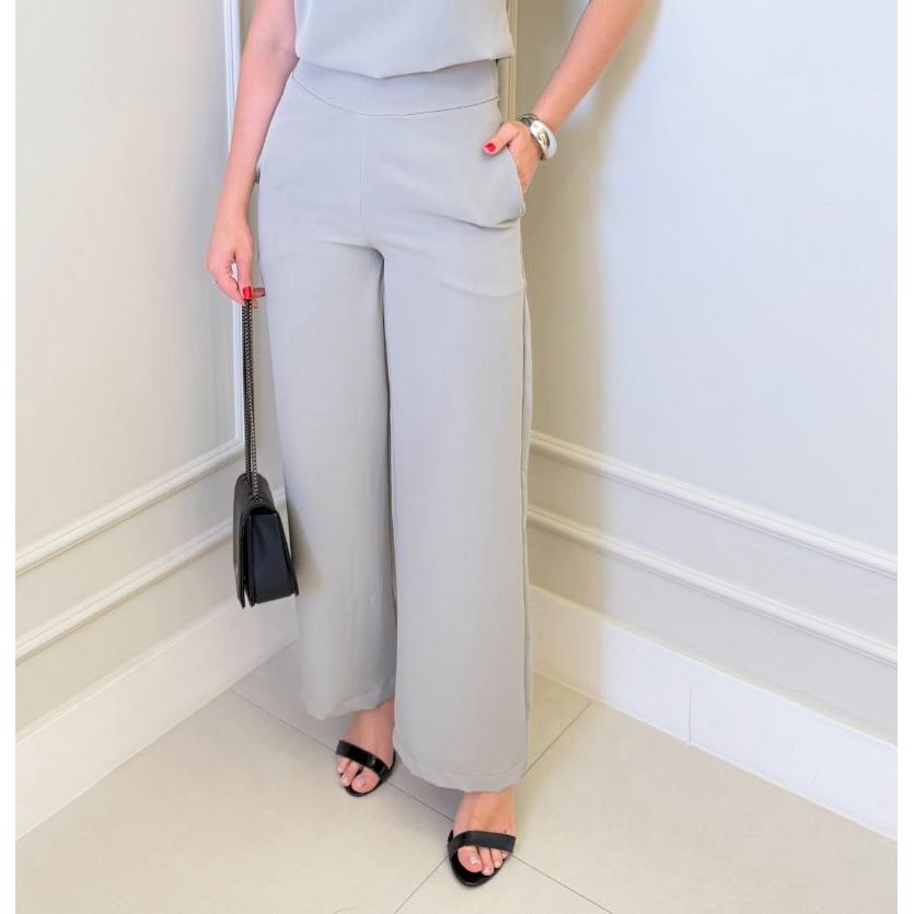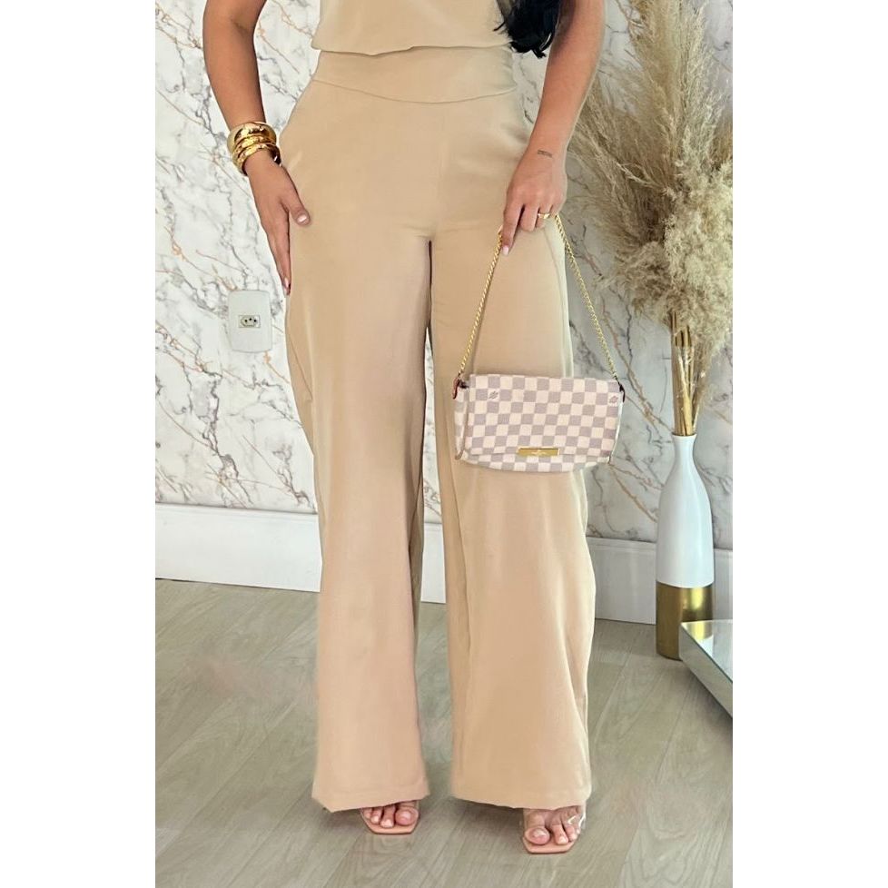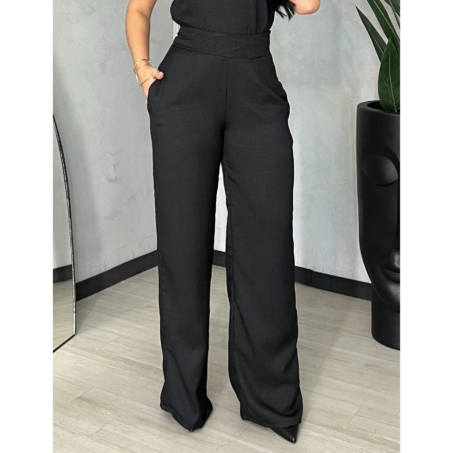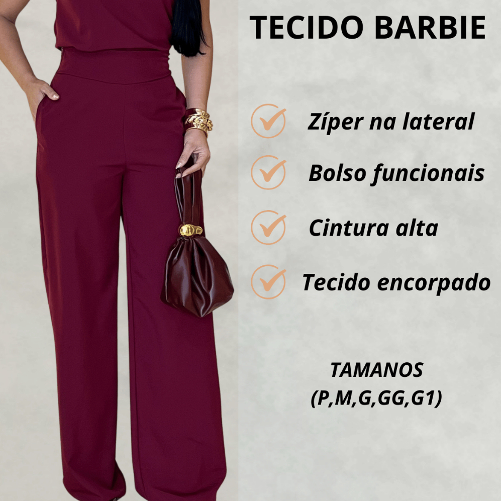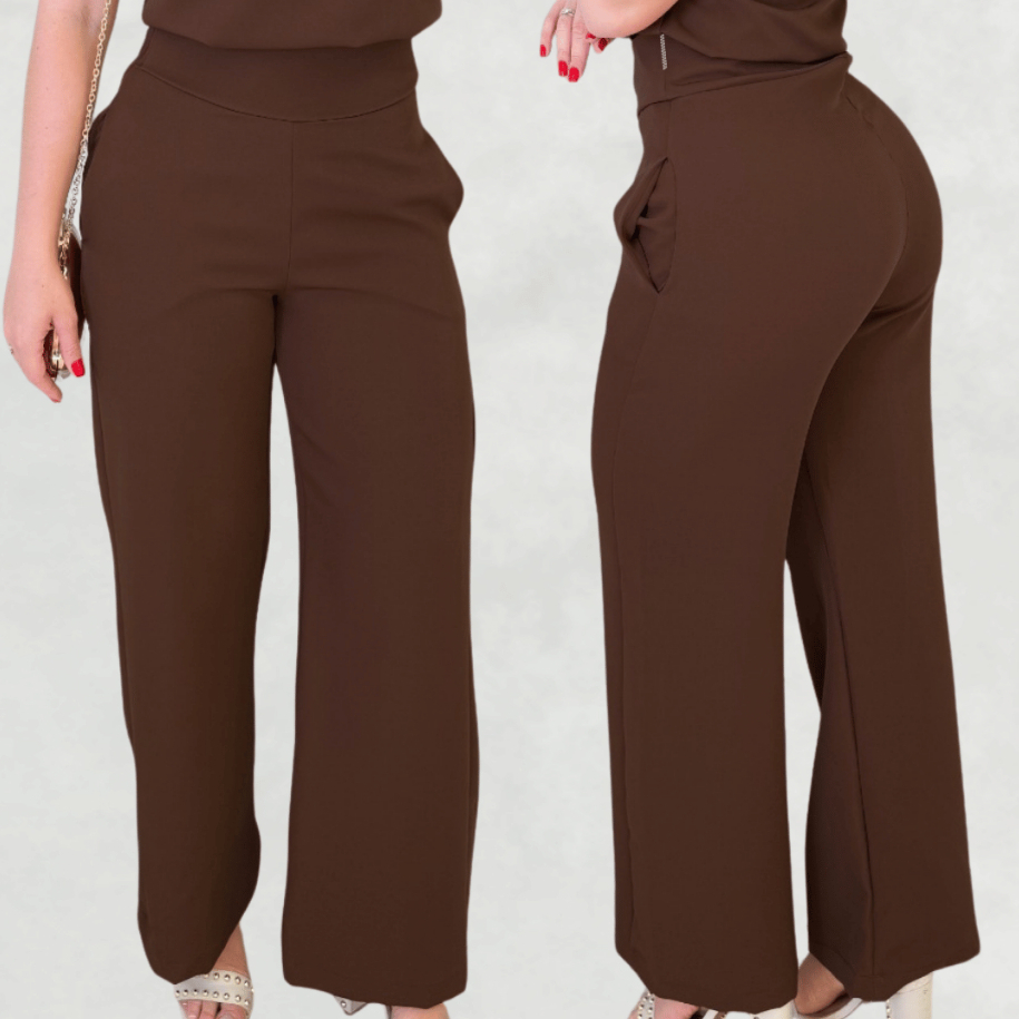 Calça Pantalona Alfaiataria tecido barbie Cintura Alta com Zípere bolso Lateral Conforto Elegância