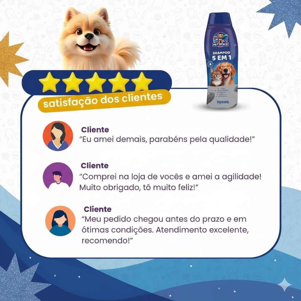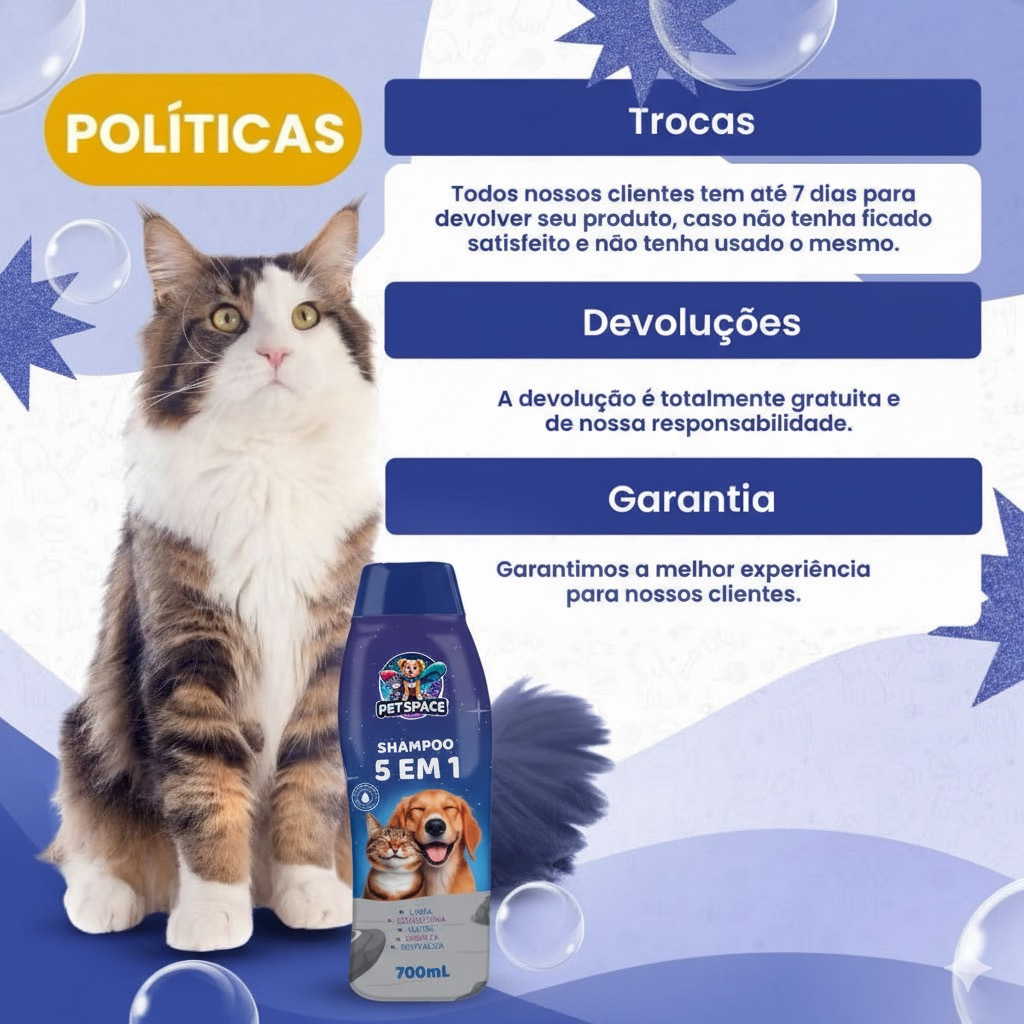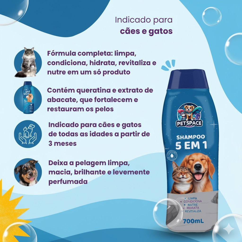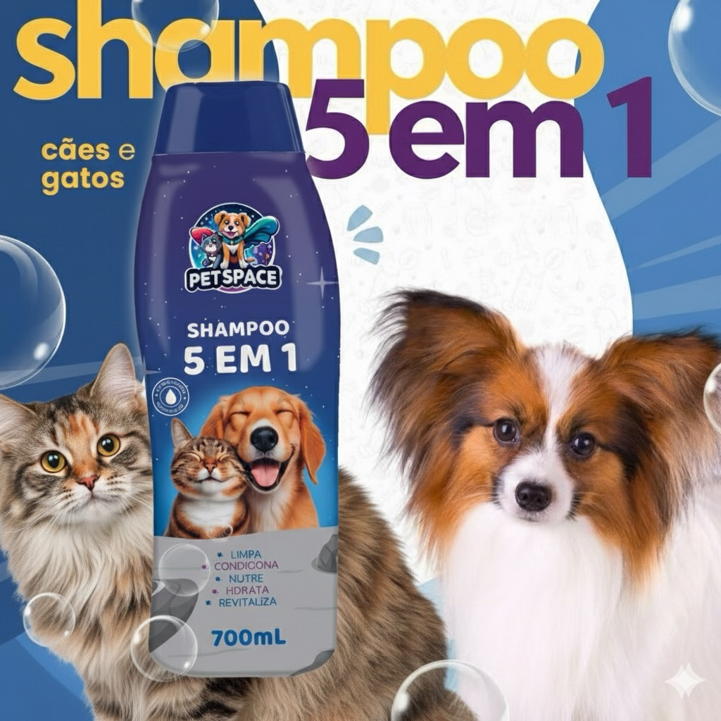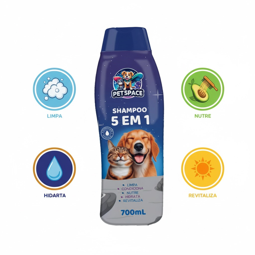Shampoo E Condicionador 5 em 1 para Cães e Gatos PET SPACE - 700ml