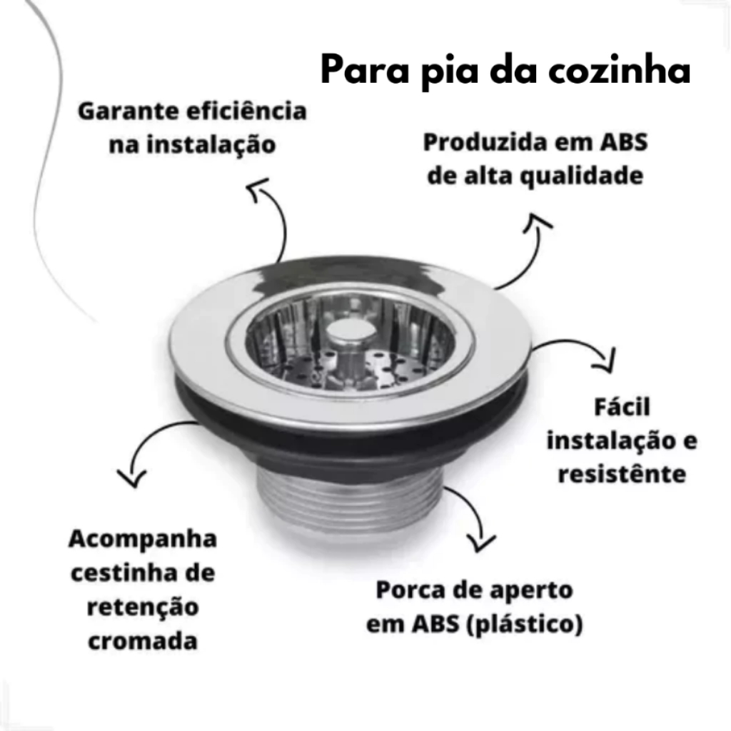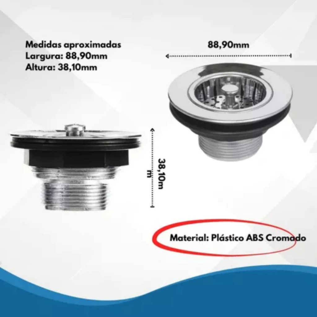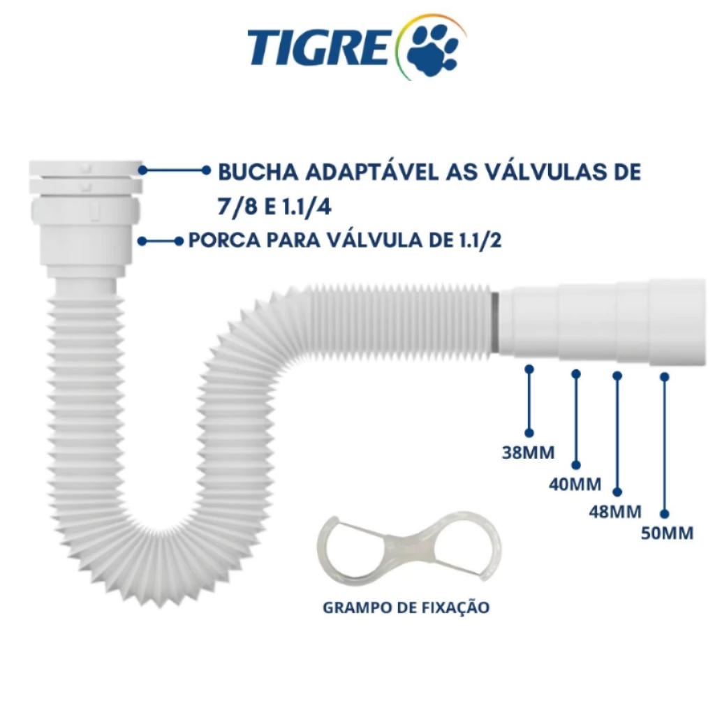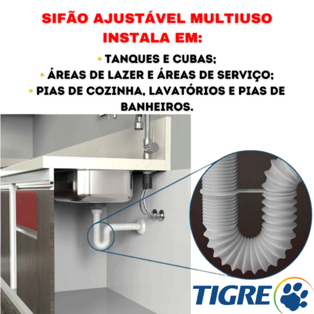 Sifão Sanfonado Tigre + Válvula Pia Cozinha Americana 3.1/2 Abs PVC Cromado Cifão pia de cozinha Sifrão Cifrão