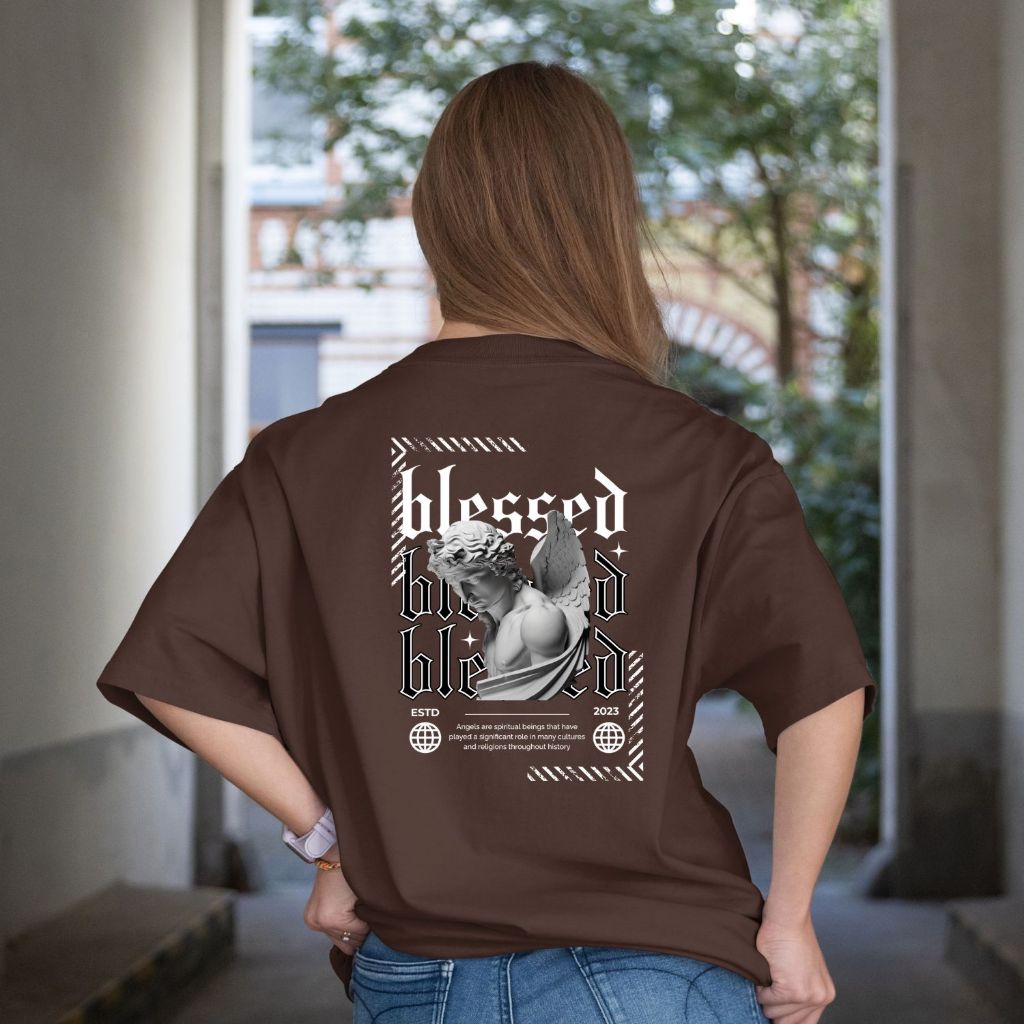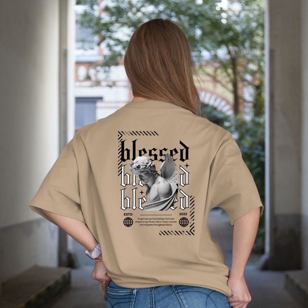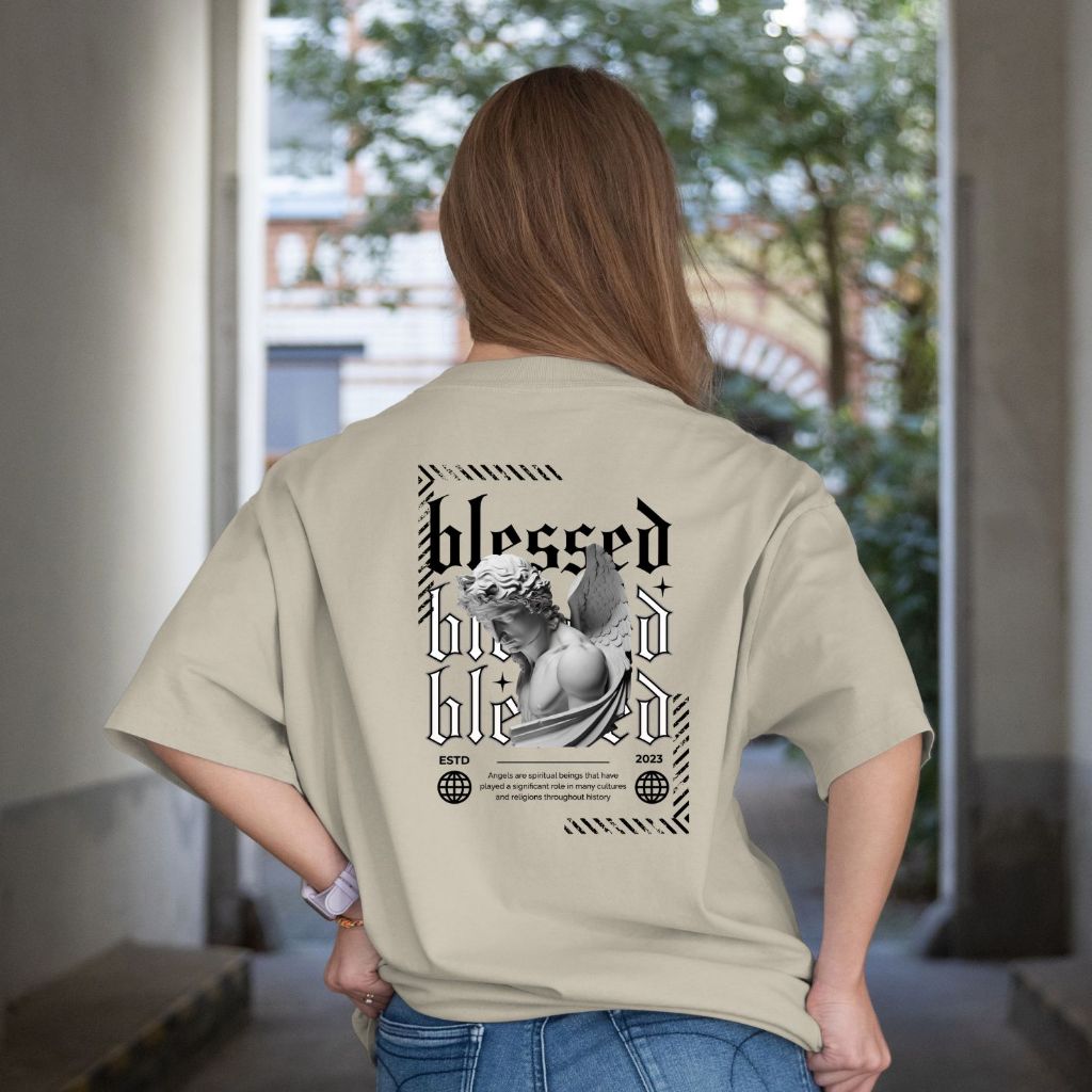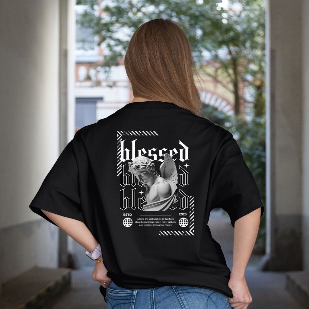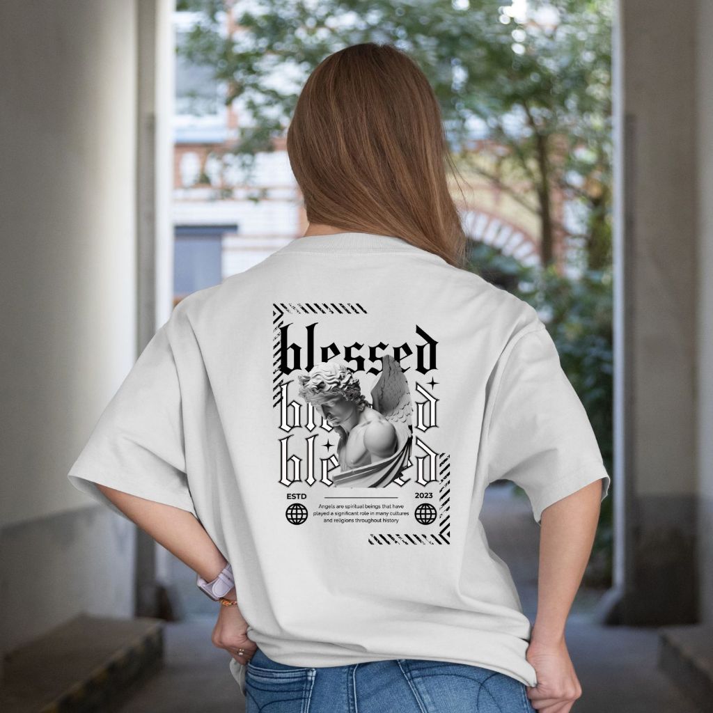 Camiseta Oversized Blessed Angels Camisão Algodão Streetwear Roupas Camisas Academia Treino