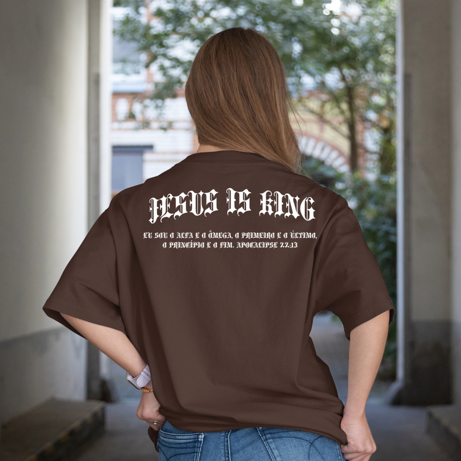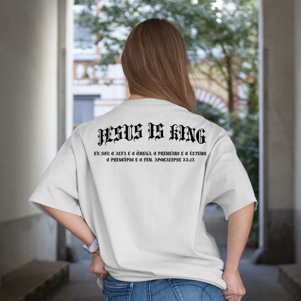 Camiseta Oversized Jesus Is King Algodão Streetwear Roupas Masculinas Camisas Academia Treino