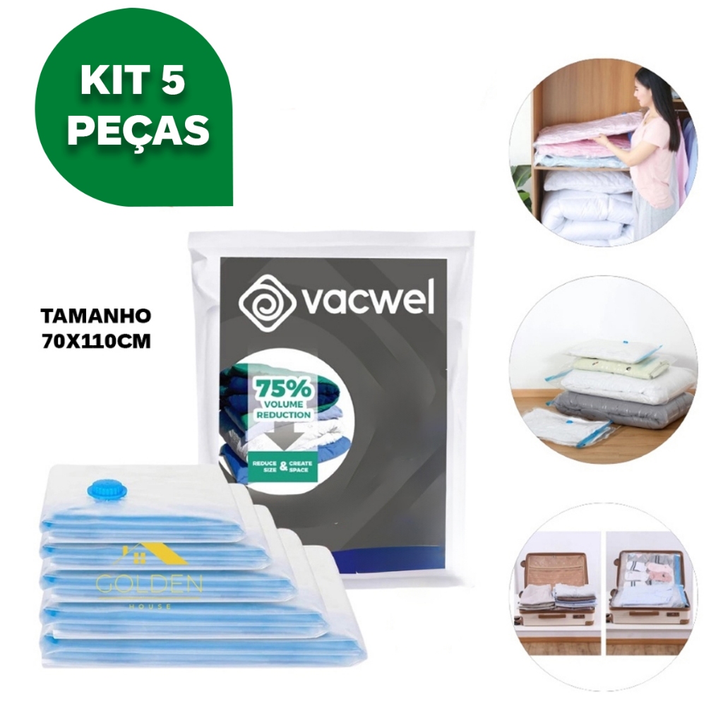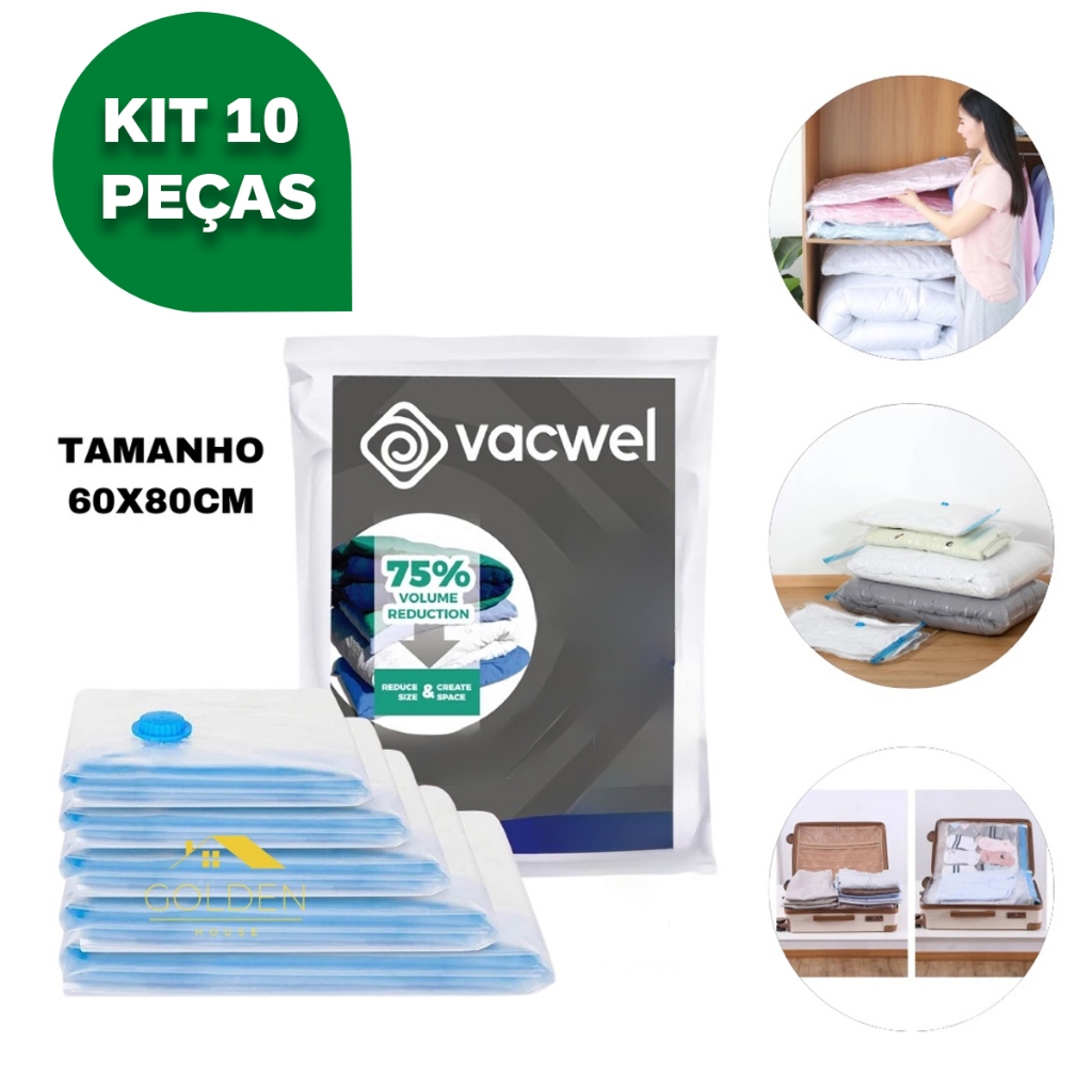 Kit Saco a Vacuo + Bomba Manual Organização de Roupas Mala Viagem Guarda Roupas