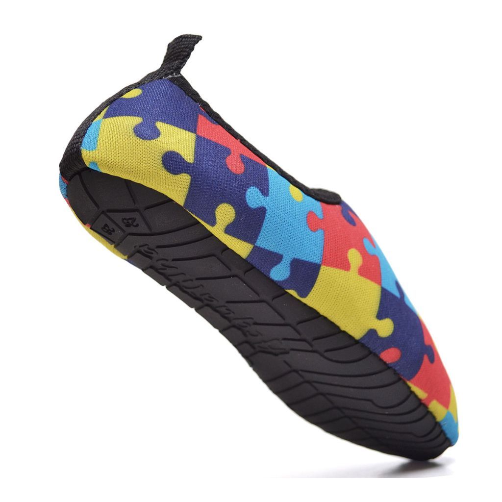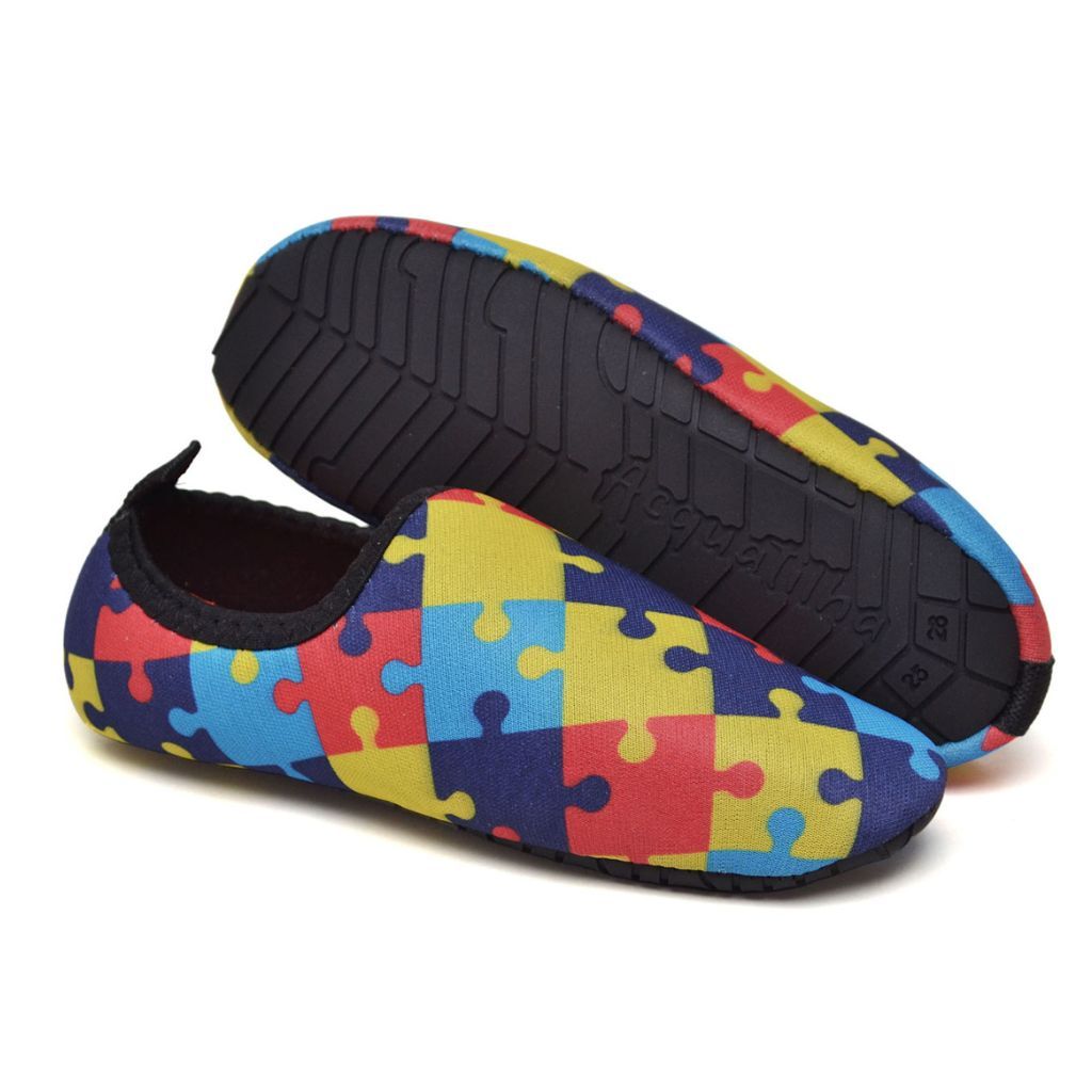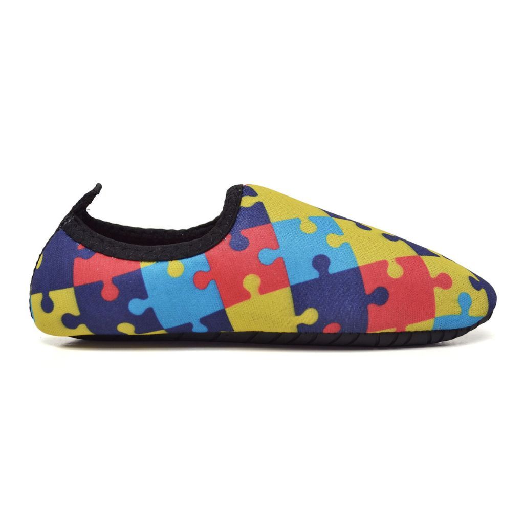 Sapatilha aquática, antiderrapante, calce fácil, sapatilha com estampa do Transtorno Espectro Autista TEA Quebra-cabeça.