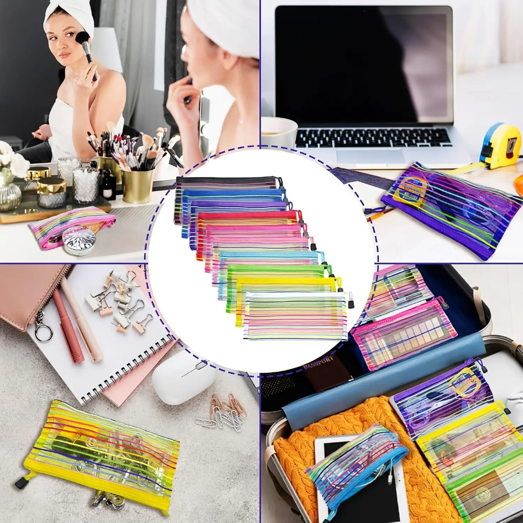 50/60/80 Unidades Estojo Multiuso Bolsinha Nylon Colorido Necessaire Promoção