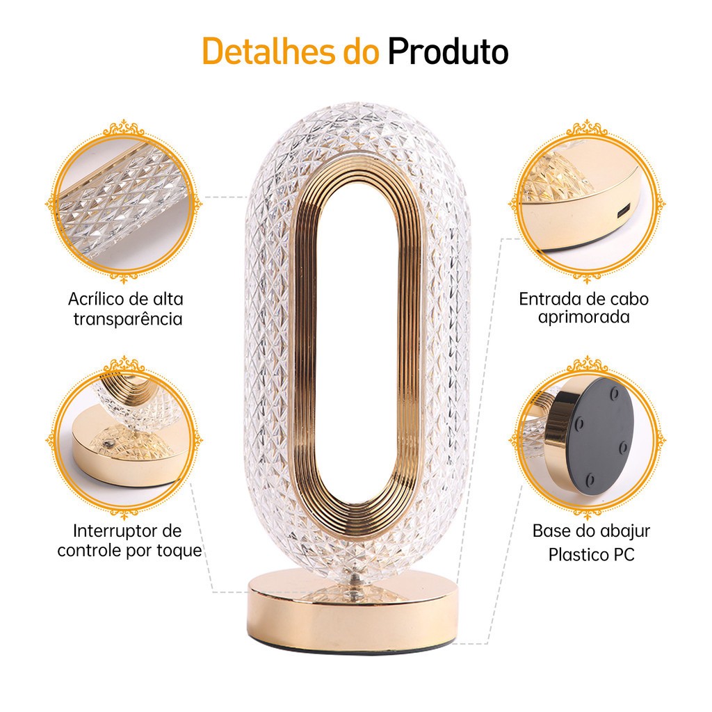 Abajur de cabeceira cristal 3 tons ajustáveis luminária para quarto LED luxuoso decoração casa