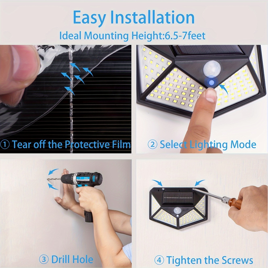 1/2/3 Pcs Luminárias Solares Impermeáveis Prova De Chuva 100 Led Sensor Courtyard Light Promoção