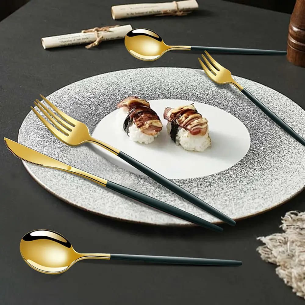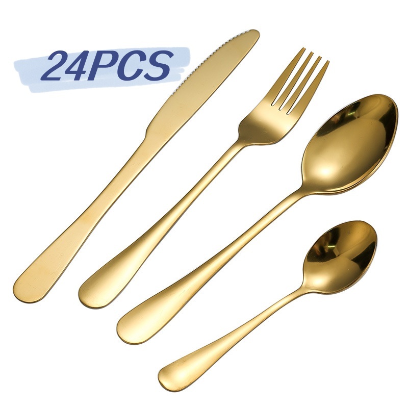 24 Pcs LouçA De Aço InoxidáVel Colher De Sobremesa Dourada / Luxuoso