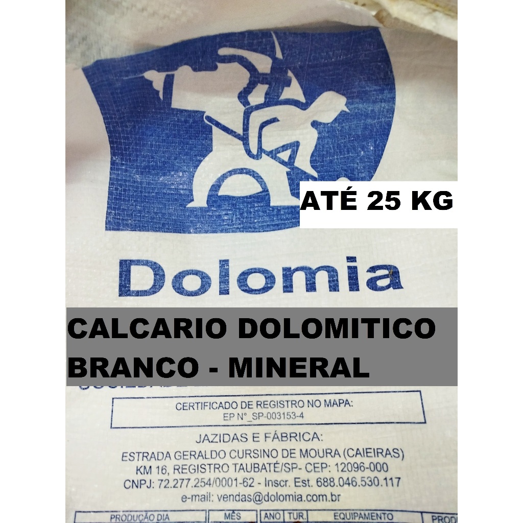 ATÉ 25KG Calcário Dolomítico BRANCO - Corretor de Solo Mineral Agrícola - Dolomia