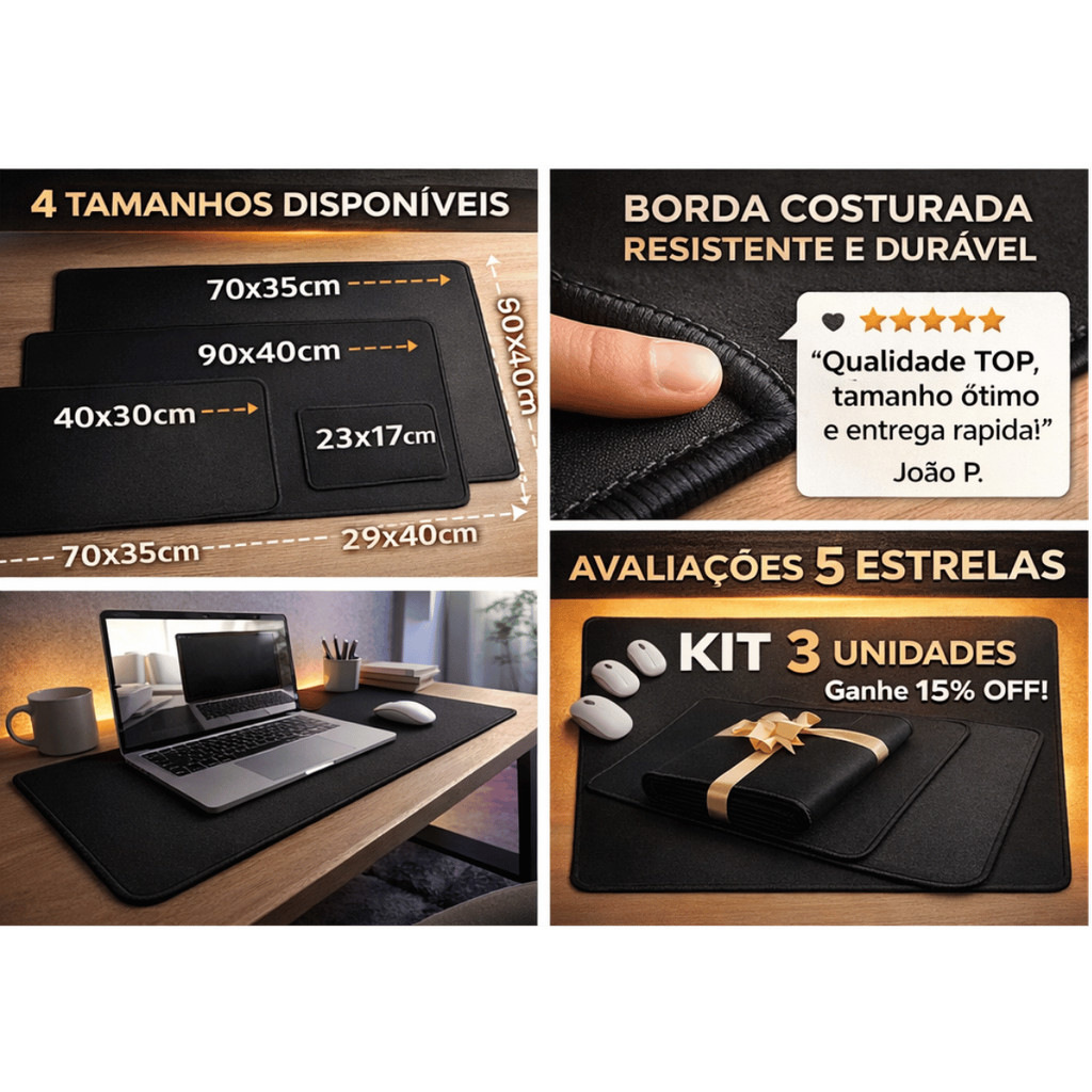 Mouse Pad Gamer Grande Conforto Premium Costurada Tamanhos Imediato