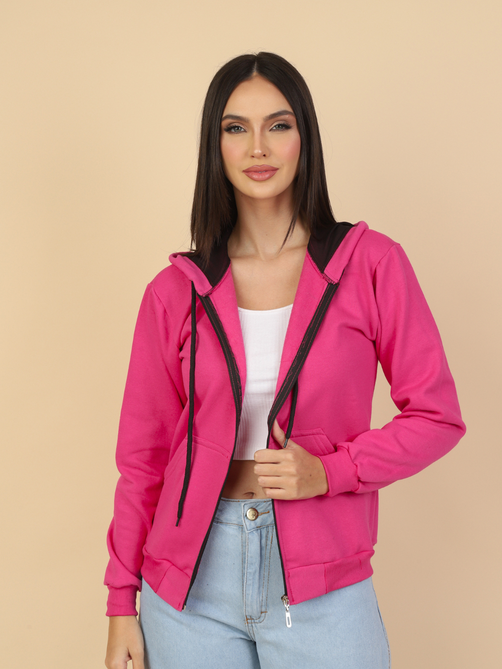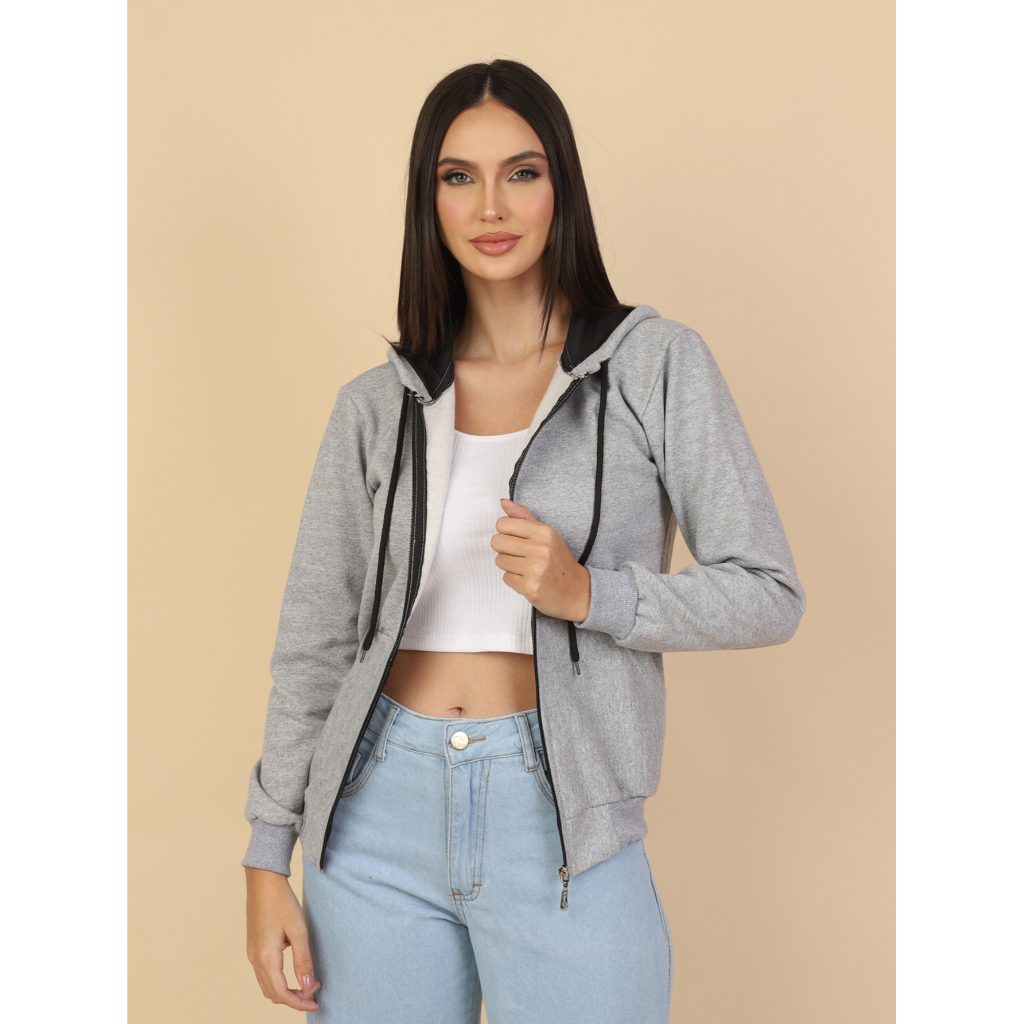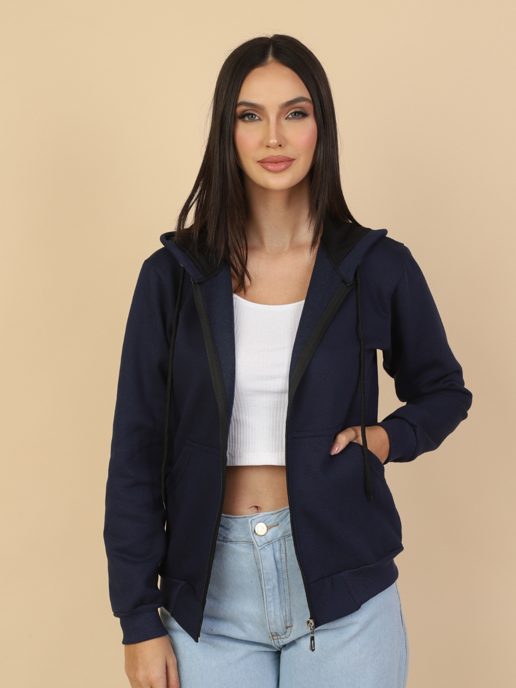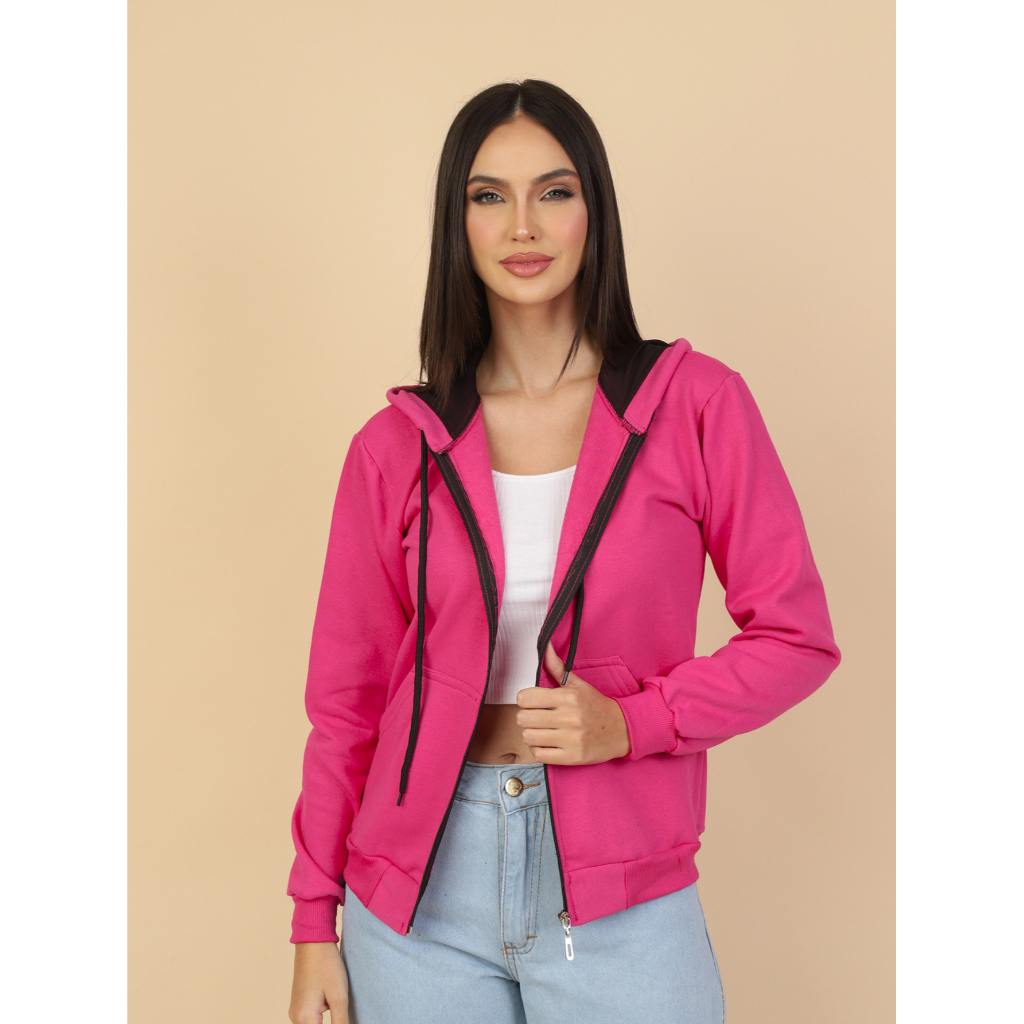 Blusa De Frio Casaco Moletom Feminina Com Ziper e Capuz Liso Várias Cores Com Plus Size