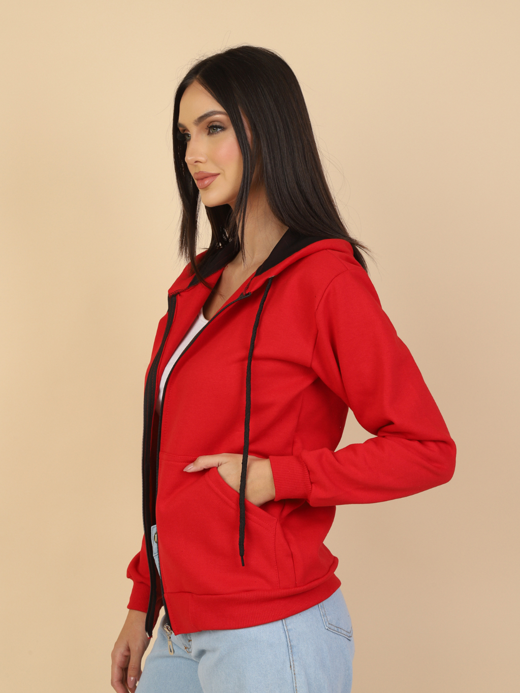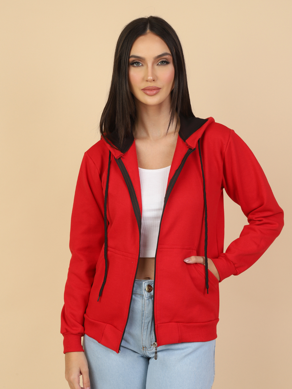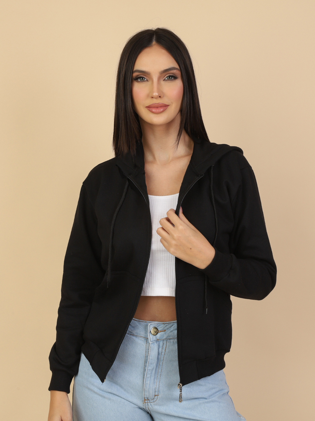 Blusa De Frio Casaco Moletom Feminina Com Ziper e Capuz Liso Várias Cores Com Plus Size