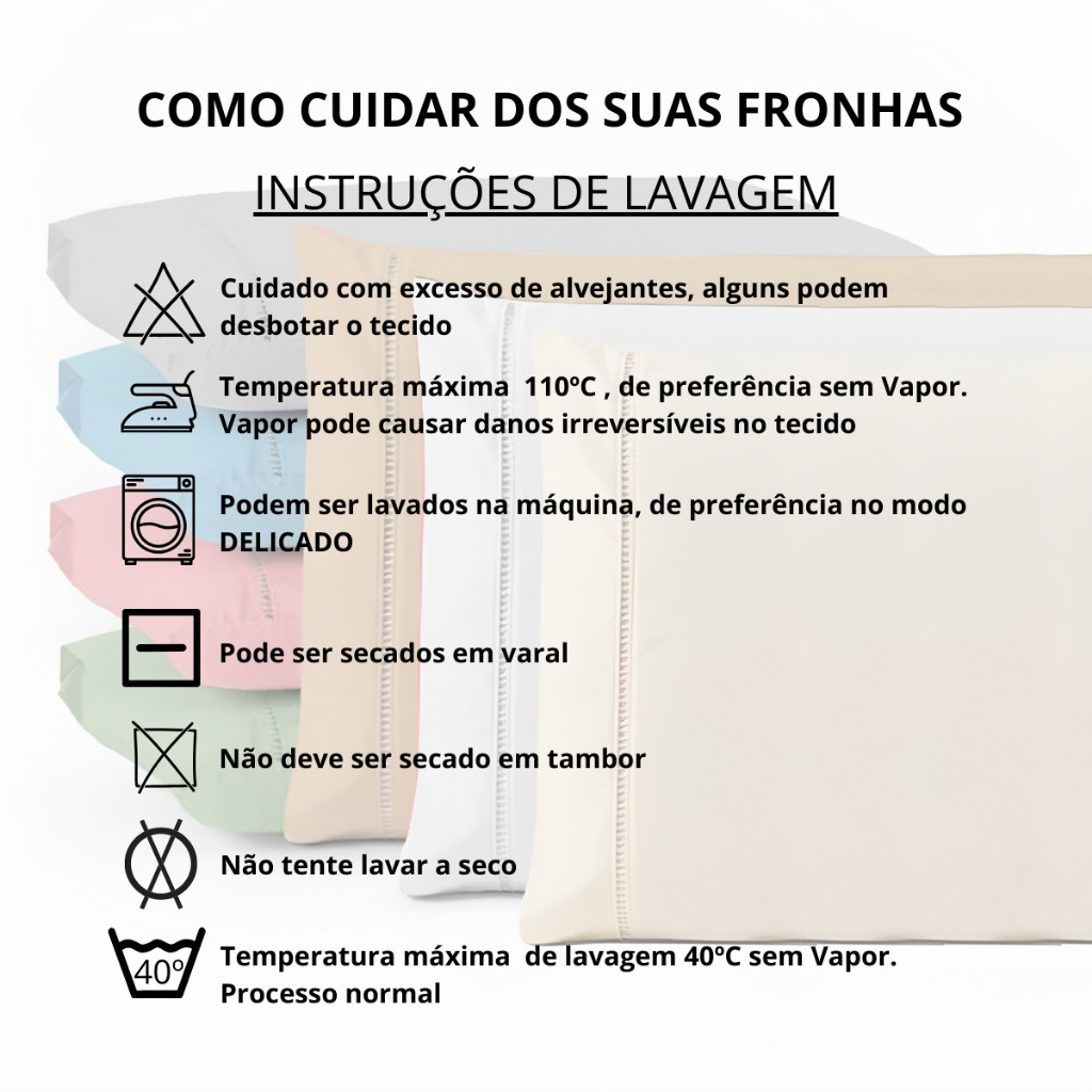 Par de Fronhas 100% Algodão com Ponto Palito 0,50 x 0,70 Percal 200 Fios - DMX CONFECÇÕES