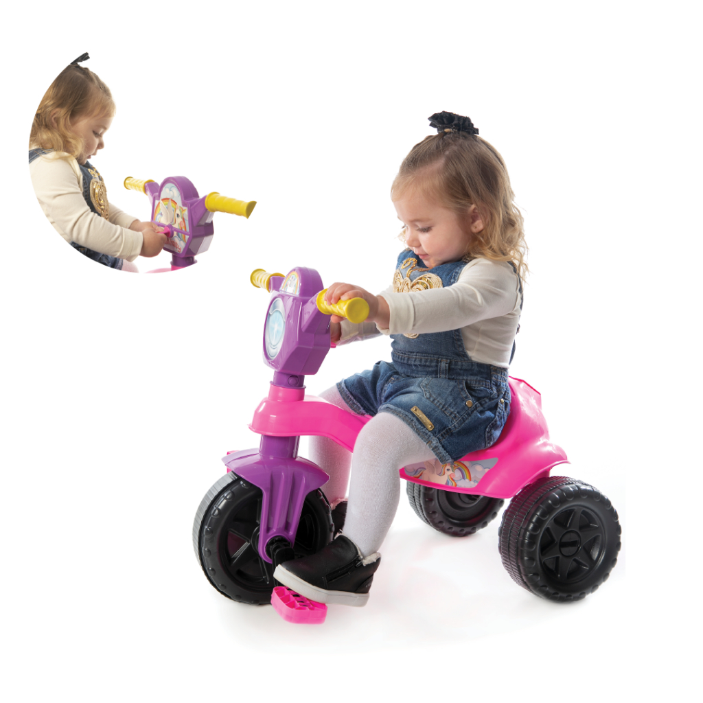Triciclo Motoca Velotrol ORIGINAL Unicornio Menina - Com Pedal e Painel - Certificado Inmetro