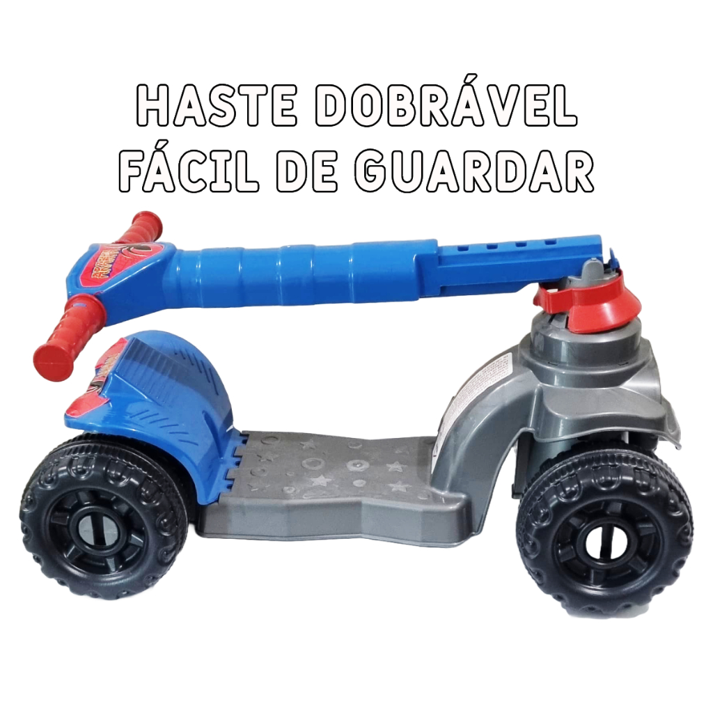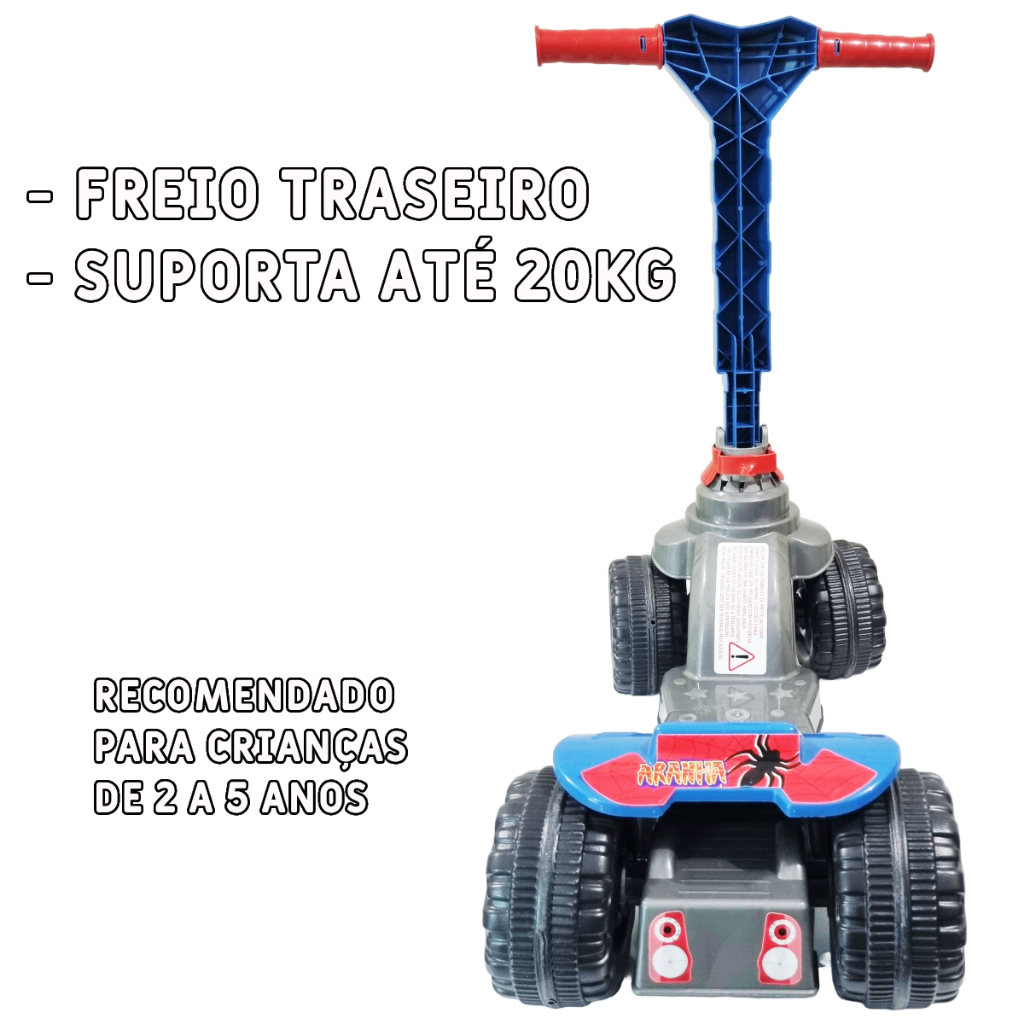 Patinete Infantil 4 rodas Aranha - 2 a 5 anos - 64cm Alt - 4 Regulagens Altura - Dobrável Inmetro - QUEEN SHOP