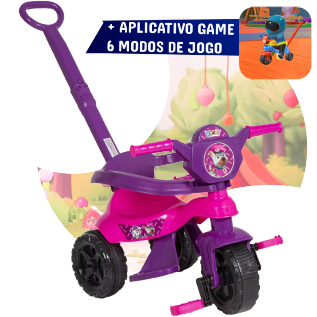 Triciclo + Game Aplicativo 3D - Velotrol ORIGINAL Motoca Completa Pedais, Empurrador, Protetor e Apoio - Inmetro