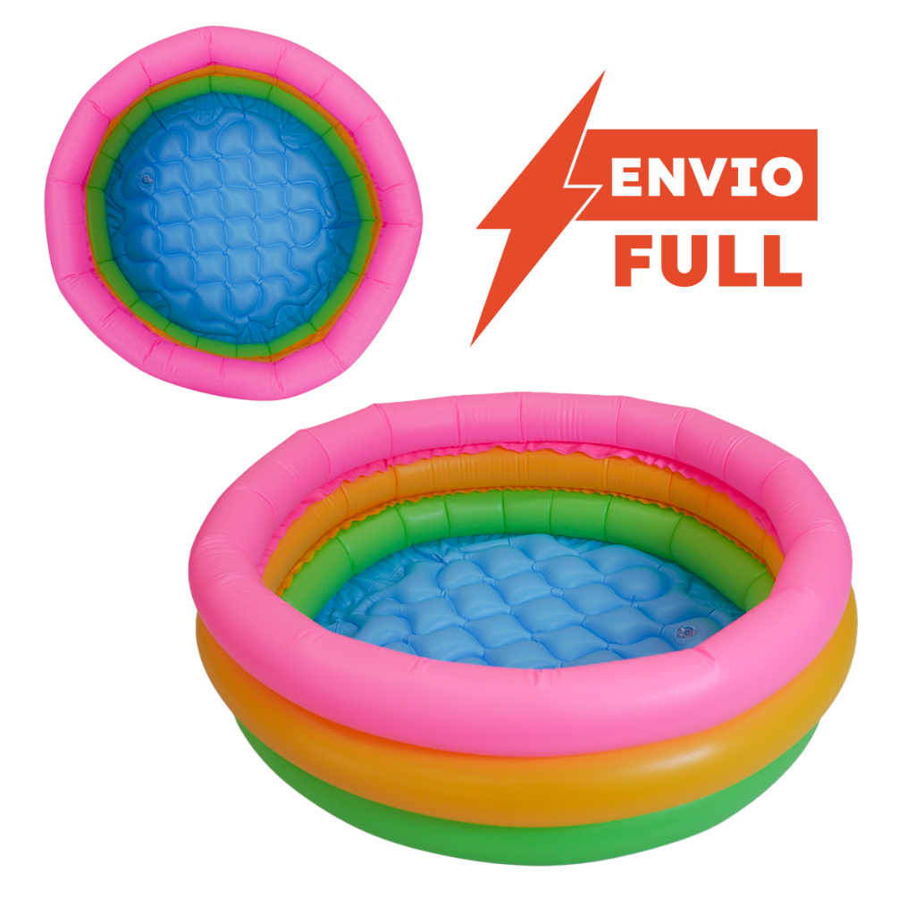 Piscina Banheira 40 Litros Colorida 62cm - Fundo Azul Inflável - 3 Camadas Infláveis - PVC Resistente - QUEEN SHOP