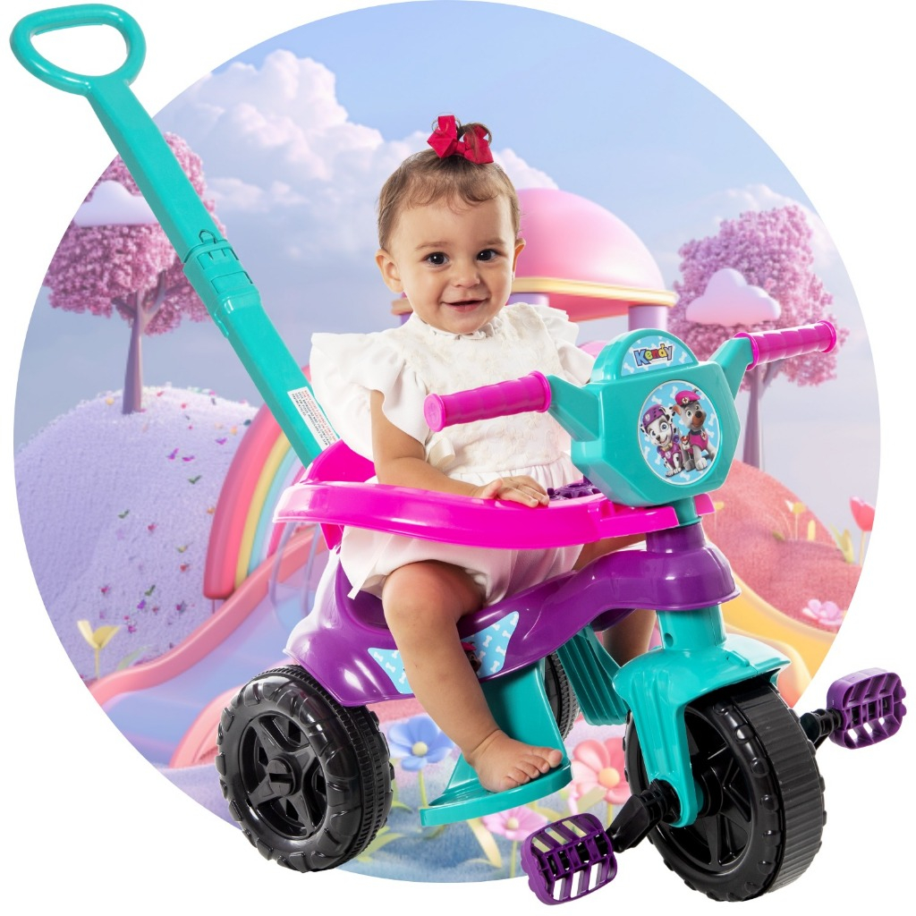 Motoca Triciclo Premium Princesinha 👑 Tiffany/Rosa – Pedal, Protetor e Empurrador 💖🌟 - Gold - QUEEN SHOP