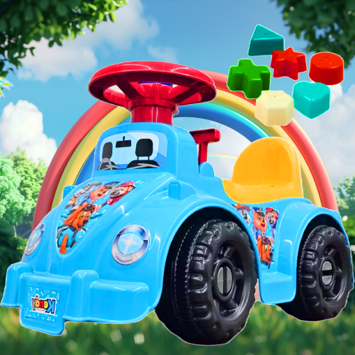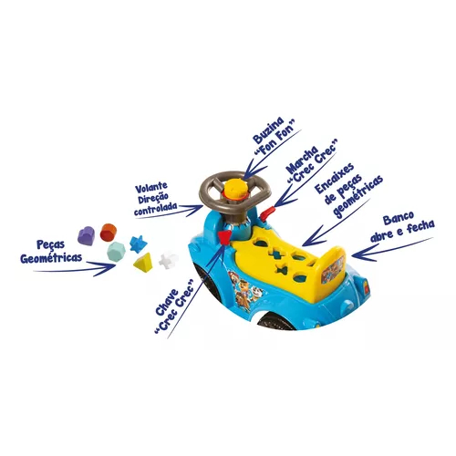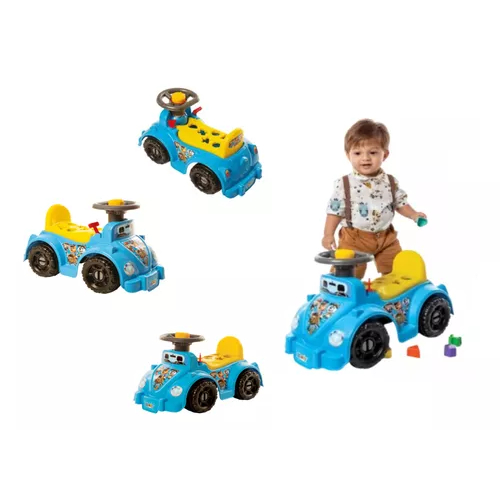Andador Quadriciclo Buzina Vira-Volante Azul Pcs Geométricas para Meninos - Certificado Inmetro!