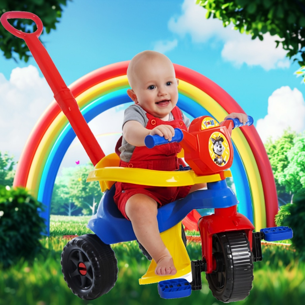 Motoca Reforçada Premium Inmetro -Completa Menino Triciclo 🚲 C/Pedal Apoio Empurrador - 🚴♂️ Gold