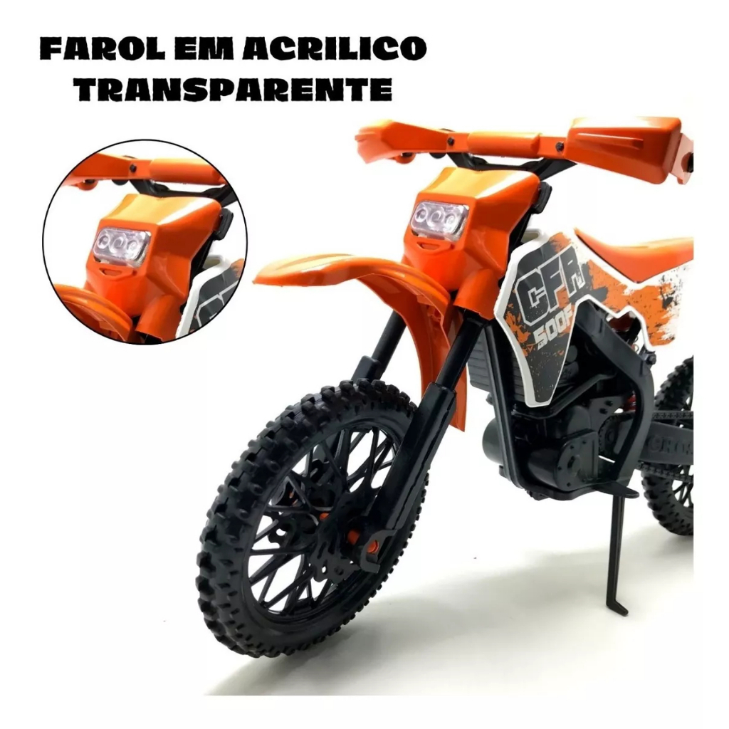 Moto Cross Brinquedo Realista Grande De 37cm Com Amortecedor e Peças Detalhistas - Certificado Inmetro