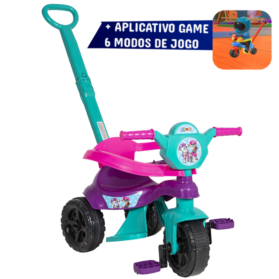 Triciclo + Game Aplicativo 3D Motoca Velotrol Menina Certificado Inmetro Com Pedal Proteção INMETRO