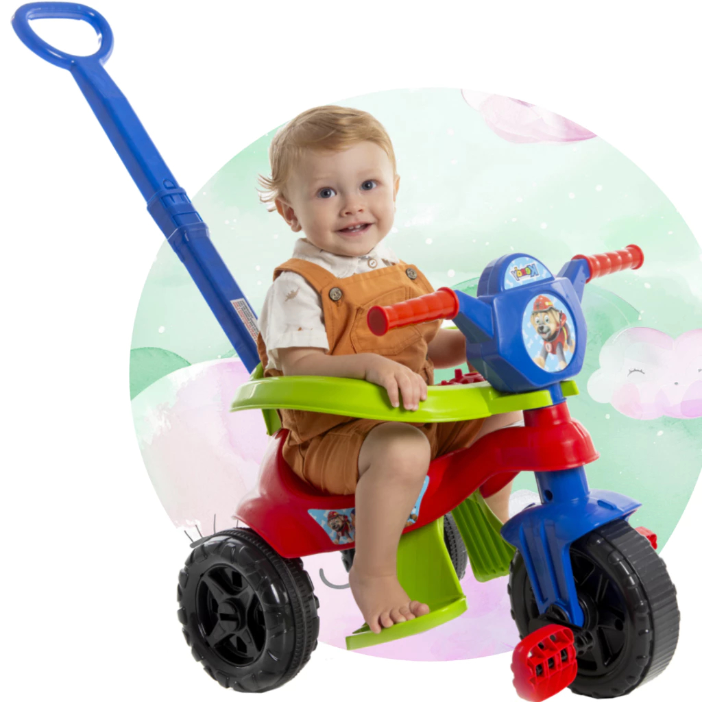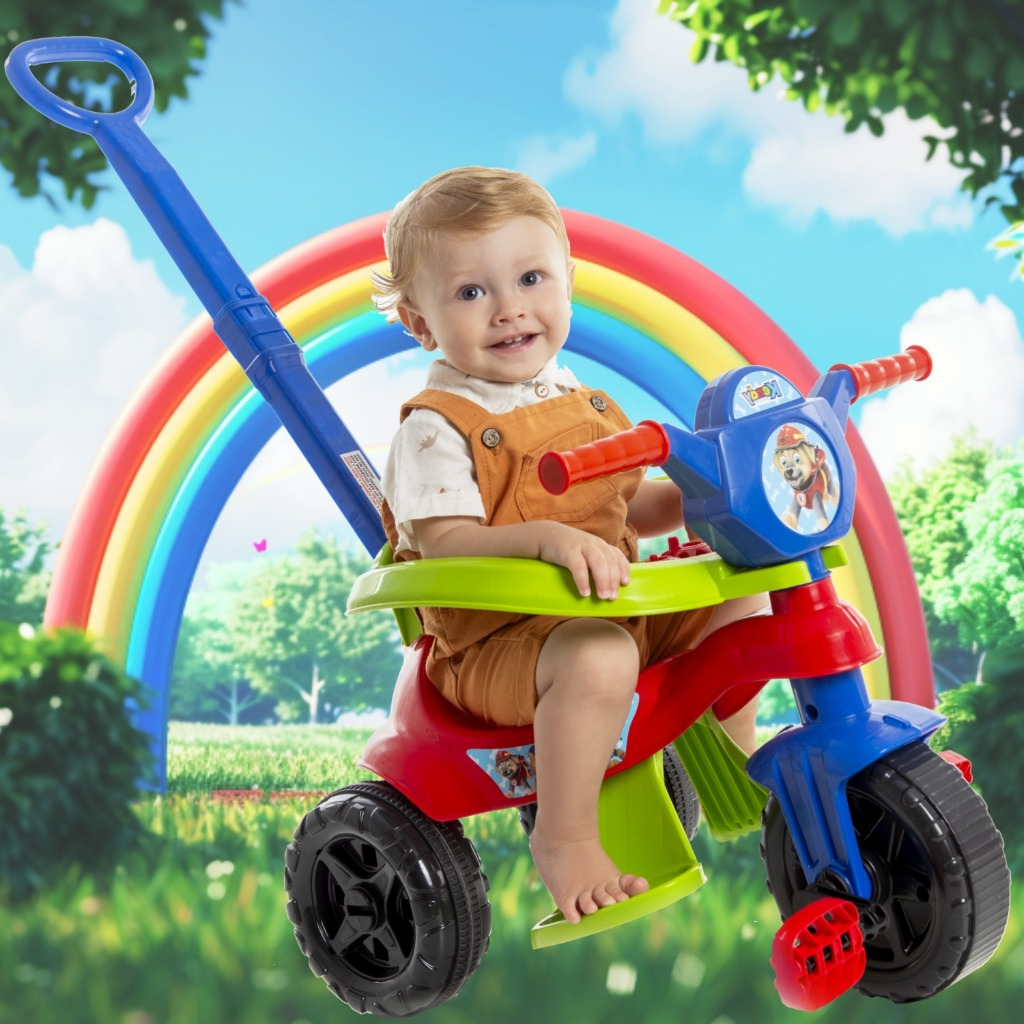 Motoca Completa 2025 👦 Menino - C/ Pedal, Empurrador, Protetor - 1 a 3 anos - Inmetro - Gold