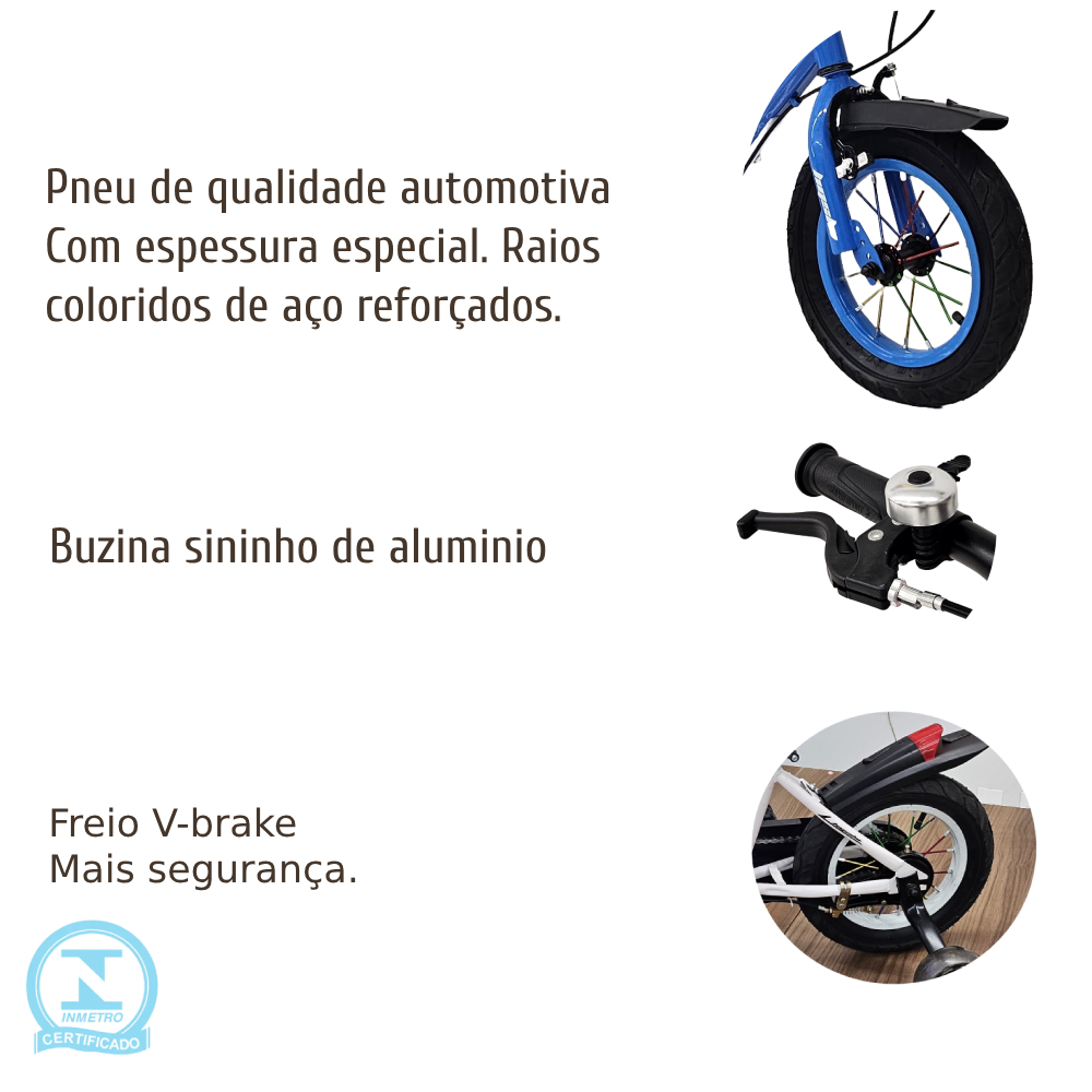Bicicleta Infantil Aro 12 - 3 Sistemas de Luz Acabamento Luxo Premium - Rodas Grossas - Inmetro - QUEEN SHOP