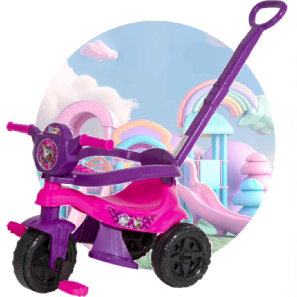 Triciclo Motoca 🚲 ORIGINAL Completa ✅ Inmetro, Pedal, Proteção e Empurrador - Gold